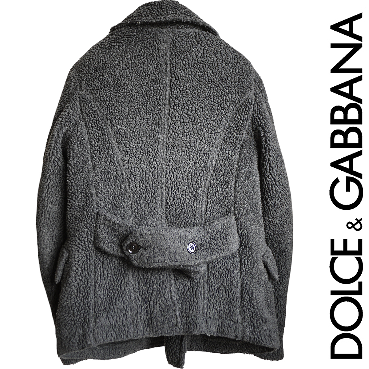 ドルチェ&ガッバーナのウールボアダブルブレステッドコートでございます。ドルチェ&ガッバーナの最高級ラインの証であるブラックタグコレクションラインのモデルでございます。適度に身幅にゆとりを持たせたトレンド感のあるボクックスサイジングの洗練されたプロポーションです。
