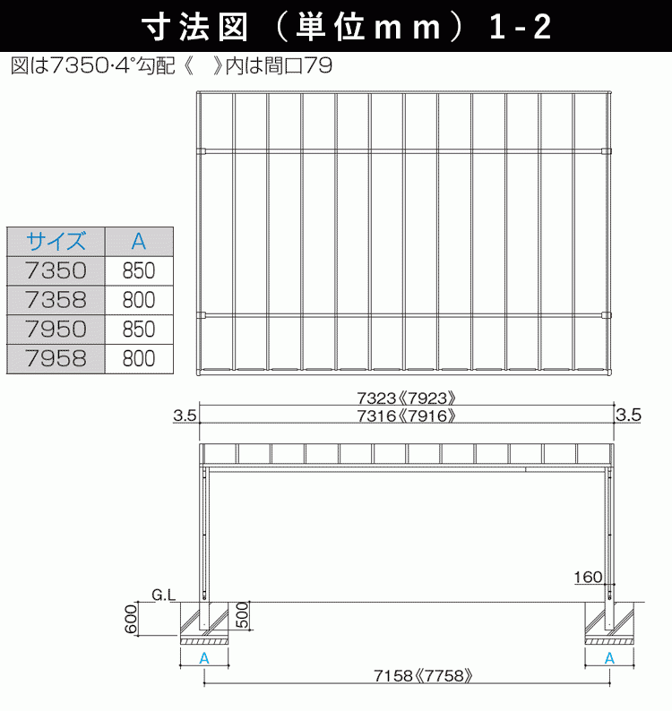 ※奥行、高さH1寸法は4°勾配の場合です。8°勾配の場合は寸法図画像2-2をご確認下さい。 ▽ 仕様
