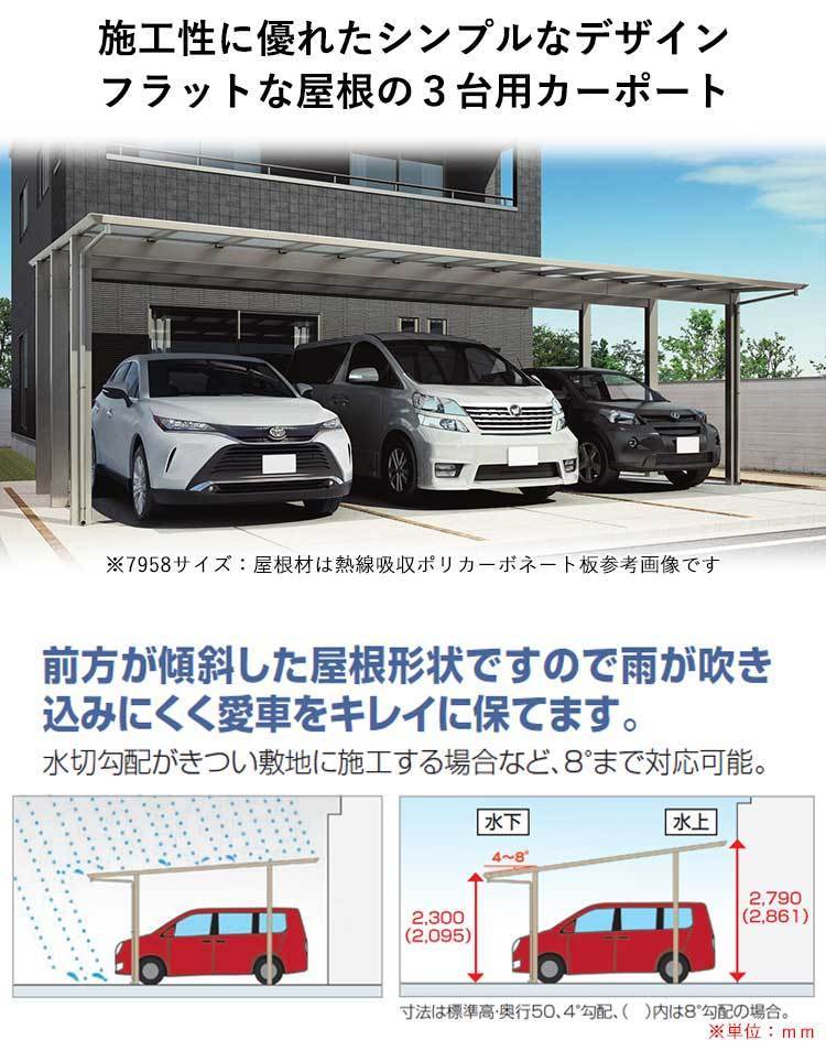 施工性に優れたシンプルなデザインの3台用カーポートです。