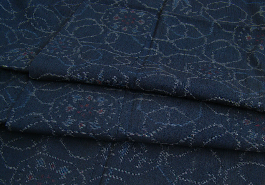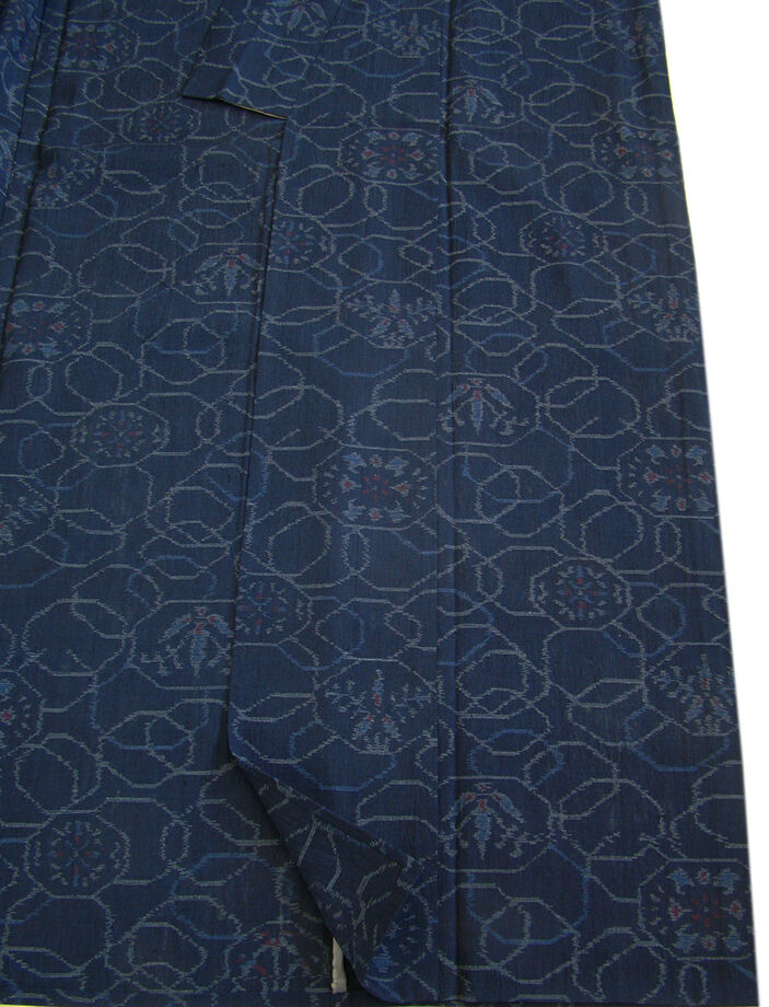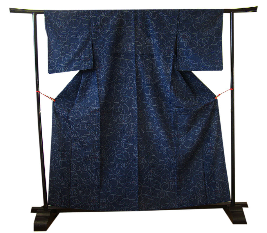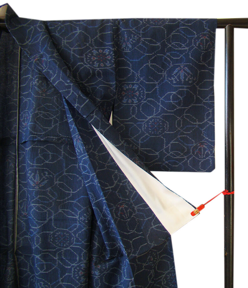 商品説明 | こちらのお品は単衣ですので5月、6月、9月にお召頂ければと思います。 着物には、大きく分けて「袷(あわせ)の着物」と「単衣(ひとえ)の着物」と「夏着物」があります。 反物(表地)を着物に仕立てるときに、裏地類をつけるものを袷の着物、 つけないものを単衣の着物と呼び、胴裏や八掛といった裏地がつかない一枚ものの着物です。 また裏地がないため、座る時などにヒップのラインが目立たないよう、 居敷当て(いしきあて)の生地をつけることもあります。 居敷当ては付いておりません。 軽く柔らかでさらりとした風合いの着心地良い単衣仕立ての味わい豊かな薩摩結城紬、 渋い藍紺色地に青、灰、赤色の織柄、 証紙・残布は残念ながらついておりませんが手触りや織等から薩摩結城紬と思われます。 |