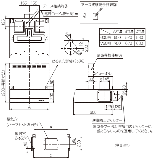 富士工業製の浅型レンジフードです。