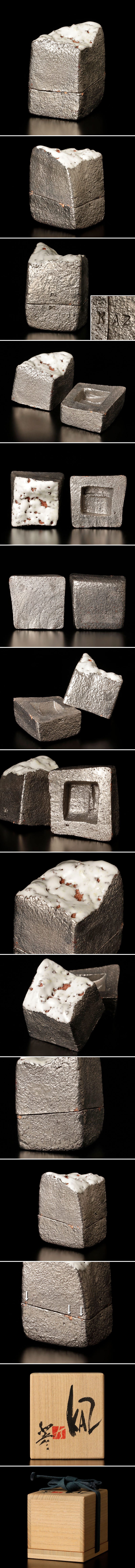 無骨で力強い佇まいと煌びやかな肌合いが目を引く香合です。 ★商品は十三代三輪休雪(三輪和彦)の作品である事を保証致します。 |