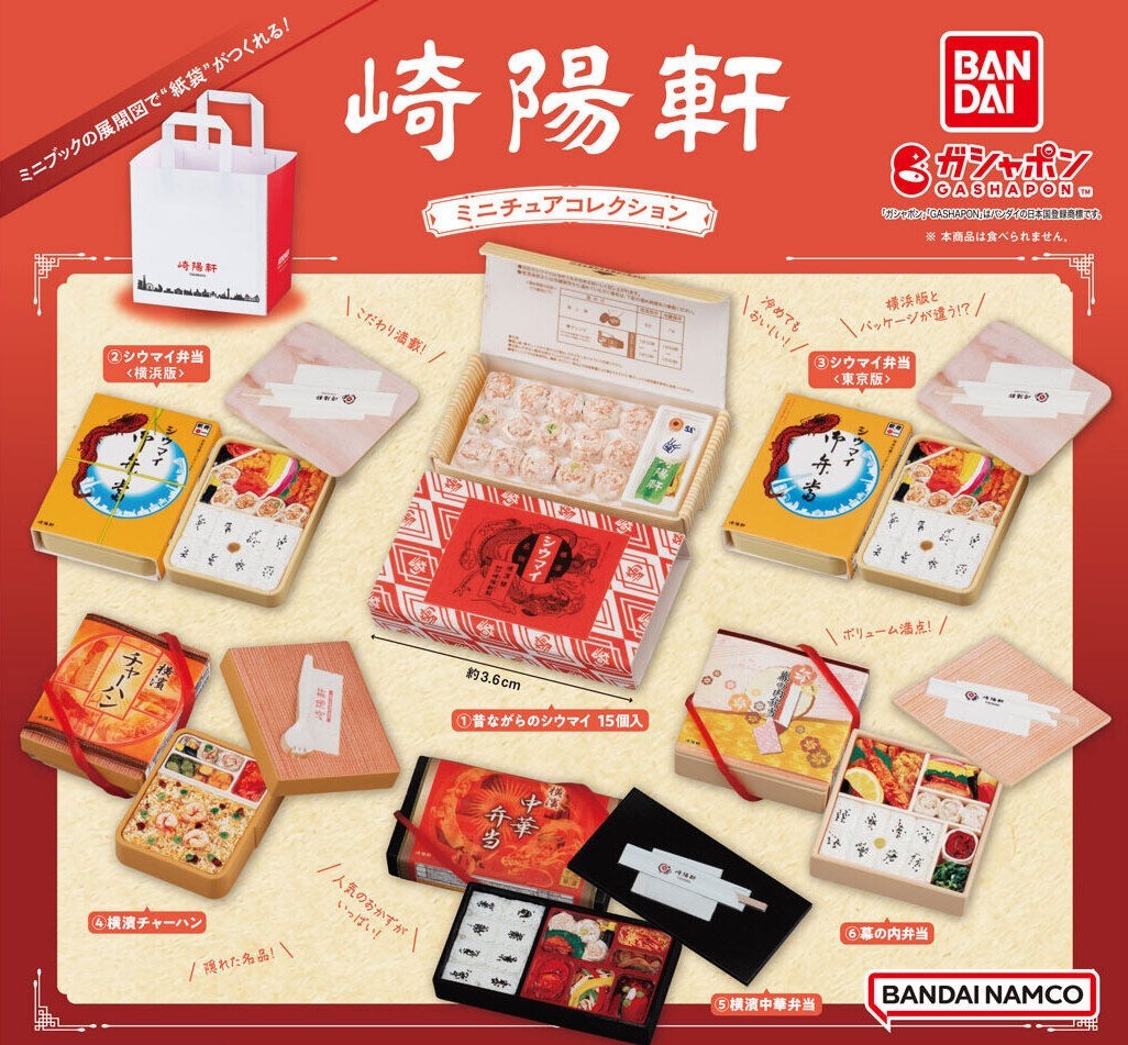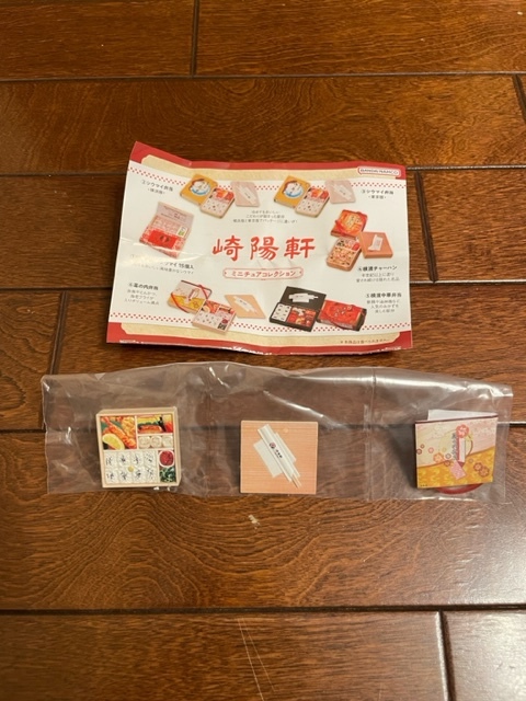 バンダイから発売の「崎陽軒ミニチュアコレクション」全6種のうち「幕の内弁当」になります。400円ガチャで、細部までリアルに作られており、食品、弁当フィギュア好きの方には垂涎もののミニフィギュアです。内袋未開封、リスト付きです。
