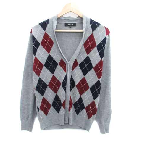 コムサイズム COMME CA ISM ニットカーディガン Vネック ミドル丈 アーガイルチェック柄 M マルチカラー グレー /HO22 レディース