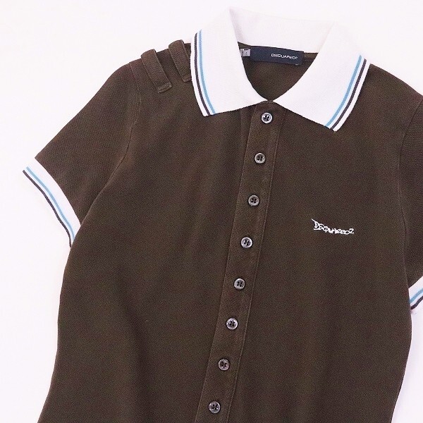 | 【FA443】◆DSQUARED2 ディースクエアード ロゴ刺繍 コットン 鹿の子 クレリックカラー ポロシャツ ダークブラウン×ホワイト L | |