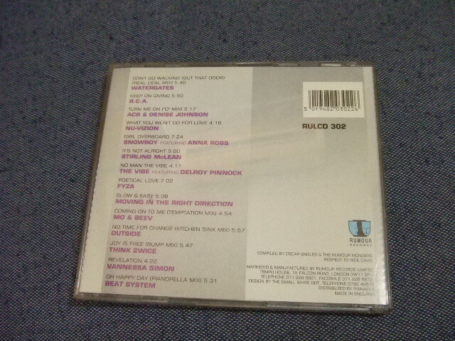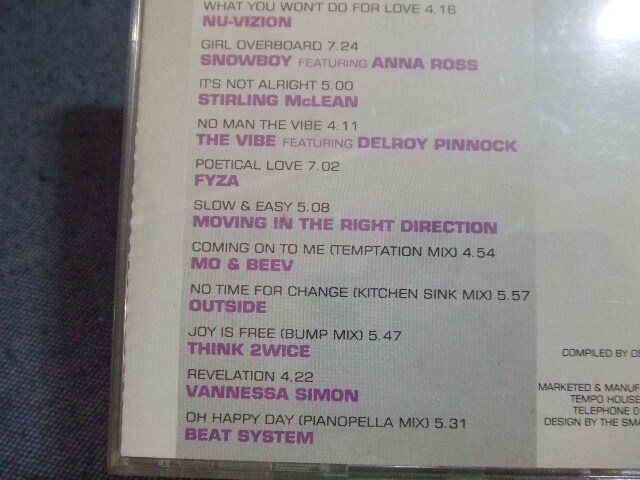 商品説明 | 管理: スタイル:RnB/Swing, Deep House, Acid Jazz, Downtempo, Jazzdance 年:1993 WatergatesDon't Go Walking (Out That Door) (Real Deal Mix)5:40 ?B.C.A.Keep On Giving (Dodge Remix)5:50 ?ACR & Denise JohnsonTurn Me On ("O" Mix)5:17 ?Nu-VizionWhat You Won't Do For Love4:16 ?SnowboyGirl Overboard7:24 ?Stirling McLeanIt's Not Alright5:00 ?The Vibe No Man The Vibe4:11 ?FyzaPoetical Love7:02、 ?Moving In The Right DirectionSlow & Easy5:08 ?Mo & BeevComing On To Me (Temptation Mix)4:54 ?OutsideNo Time For Change (Kitchen Sink Mix)5:57 ?Think 2wice Joy Is Free (Bump Mix)5:47 ?Vannessa SimonRevelation4:22 ?Beat System Oh Happy Day (Pianopella Mix)5:31 盤:スレ傷がありますが、傷の角度等からして、再生には全く支障が無いと思います。 帯:0 ケース:スレ、汚れあり。 ブックレットORインナー・シート :黄ばみあり 見落としがあったらすみません。 ★★海外発送、バラ売りはいたしません。 |