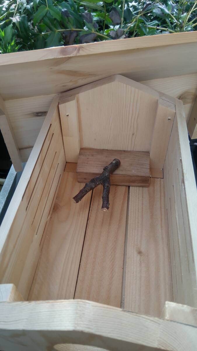①小鳥の巣箱 野外 室内兼用木の枝にセツトするタイプの説明。ECO溝が左側4本 右側5本入りの通気性の良いチヨツト大きめの屋根が外れお掃除が簡単に出来る室内 野外兼用タイプの商品です。大きさ内寸約135ミリΧ230ミリの長方形 屋根裏まで約120ミリ 小鳥の入り口40ミリ丸 内装とまり木タイプ  ②小鳥 小動物の餌箱 (兼用タイプ)の説明。小鳥 小動物が餌を食べにくる所を鑑賞観察して楽しむ商品です。大きさ内寸約80ミリΧ110ミリの長方形 床面から屋根裏まで約130ミリ 餌入れ50ミリ丸(小動物用)1ヶ所  30ミリ丸(小鳥用) 2ヶ所 以上の巣箱 餌箱のまとめ出品。送料消費税込み 配送ヤクネコおてがる配送80サイズ扱い ☆セツトは自由に考えてください。