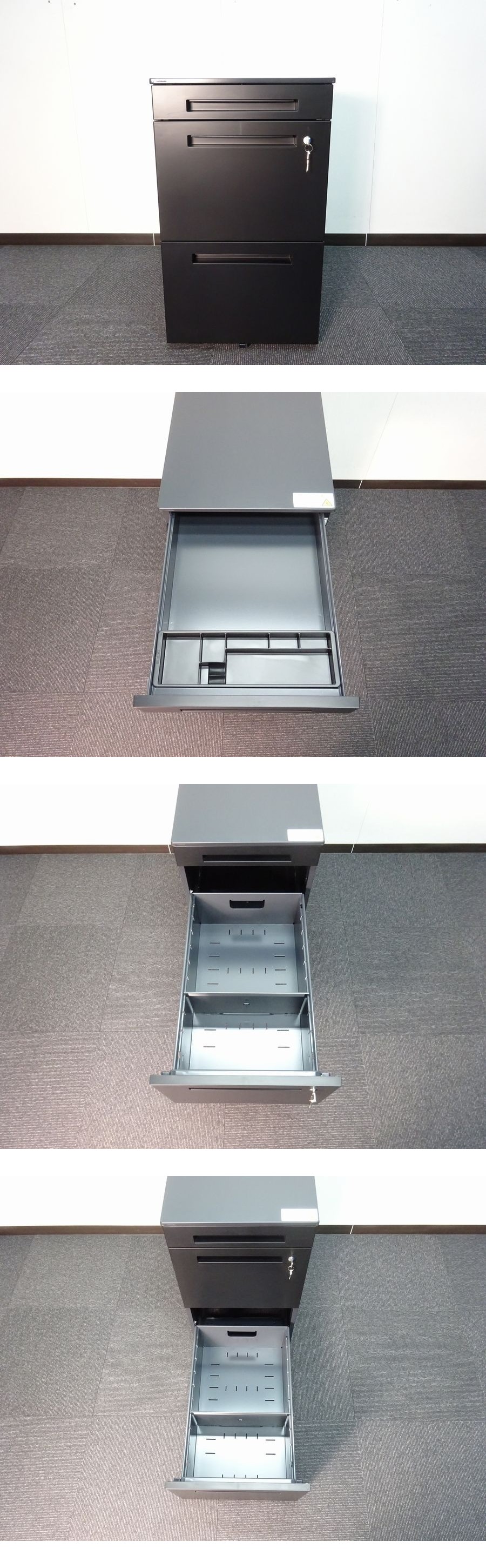 ・メーカー:イトーキ ・型番:CZR-046MRCB-T1 ・サイズ:W400×D593×H684 単位(mm) ・本体カラー:ブラック ・価格:¥103,730 オフィスファニチャーブランド“イトーキ”のCZRデスクワゴンです。ムダを省いた、シンプルで研ぎ澄まされたデザインのオフィスデスク「CZR」シリーズ。デスク下に置いたり、サイドに置いたりと自由な使い方が可能なワゴン。上下2段ともビジネスシーンで使用頻度の高いA4ファイルの収納が可能で、最上段には便利なペントレイが付いています。またシリンダー式のオールロック錠付で、セキュリティ面も安心です。 ■仕様 ・本体:スチール塗装仕上 ・引出し前板:樹脂 ・仕切り板各段1枚付、ペントレイ付 ・鍵2本付 ■状態 ・こちらの商品は2025年製未使用品となります。運搬時の若干のスレはございますが目立つキズ、汚れなど無く綺麗な状態です。高さが高いタイプの為、ご確認後のご入札宜しくお願い致します。 (※未使用とは…商品を開封し、設置等しましたが一度も使用せず保管していた商品となります。) |