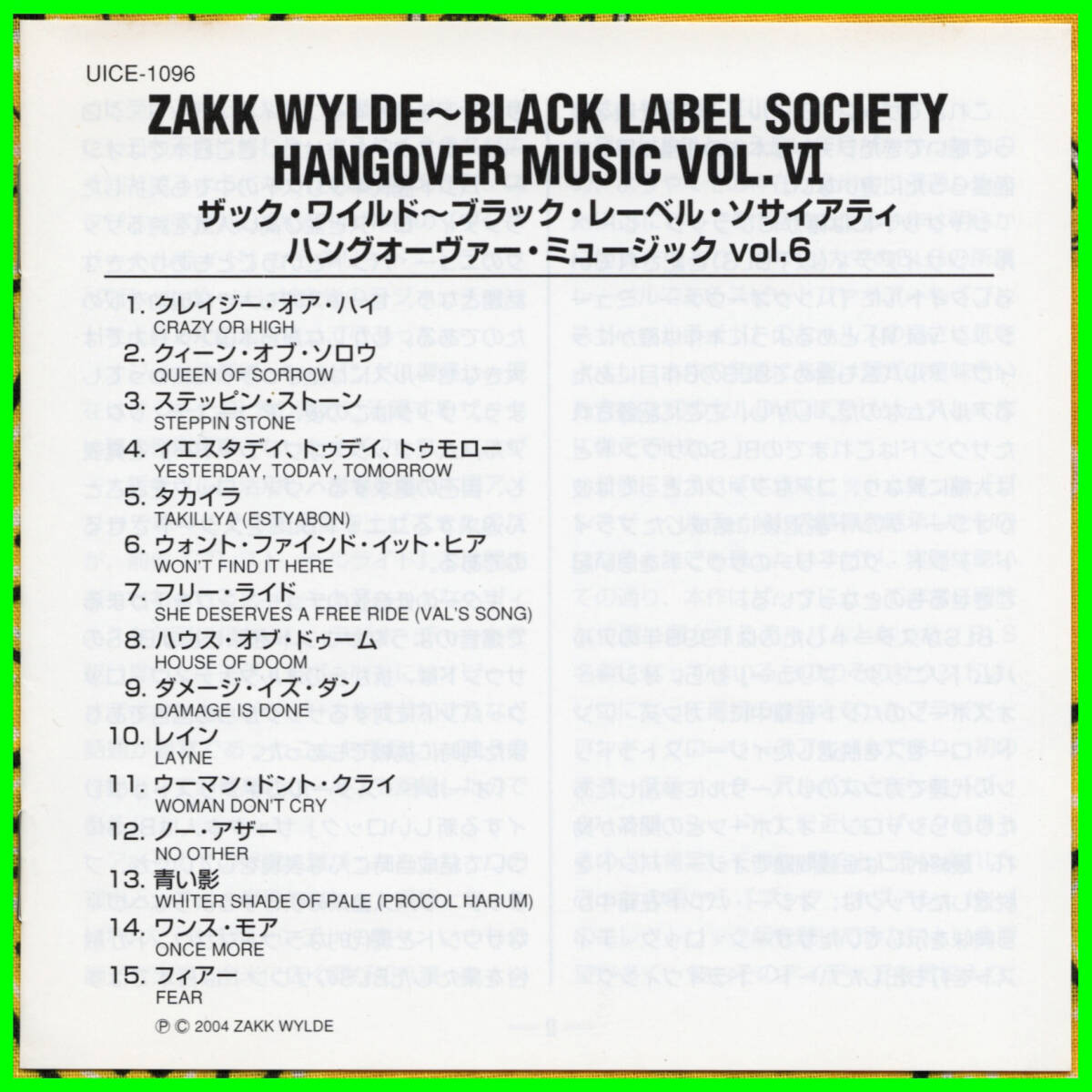 迅速な取引を行うためオークション終了後48時間以内に取引ナビにて手続きを開始して下さい。 ※取引メッセージの投稿は手続きとみなしません。 手続き頂けない場合は落札者都合で削除いたします。 また、商品説明や注意事項、自己紹介欄等をしっかり熟読した上での入札をお願いいたします。 出品者の立場を理解せず不必要なメッセージのやり取りをしようとする方、マイルールを押し付ける方の入札は一切お断りです。過去の評価についてもしっかりご覧下さい。 オークション代行業者の方へ入札頂くのは構いませんが商品の管理に必要だとの理由でIDを記載してくれとの要求がありますがご自身のビジネス管理を丸投げする行為には一切応じませんのでご了承の上、入札下さい。 入札される方は自己紹介欄をご覧下さい←簡単な取引の流れを記載しておりますのでクリックして読んで下さいませ。 ≪商品詳細≫BLS大変身? 名作「ブック・オブ・シャドー」のエレクトリック・ヴァージョンとも言える男の深いロック・アルバム完成だ!(帯タタキから) OZZY OSBOURNE(オジー・オズボーン)を長きに渡り支えたギタリストで現在PANTERA(パンテラ)でも活躍するザック・ワイルド率いるBLACK LABEL SOCIETY(ワイルド・ブラック・レーベル・ソサイアティ)が2004年に発表した5thアルバム「Hangover Music Vol.Ⅵ/ハングオーヴァー・ミュージックvol.6」国内盤帯付CDです。 バンドラインナップ Zakk Wylde(Guitars/Vocals/Bass/Piano)※OZZY OSBOURNE~PRIDE & GLORY~PANTERA Craig Nunenmacher(Drums)※CROWBAR~LILLIAN AXE John Tempesta(Drums)tr.14 James LoMenzo(Bass)tr3,4,6?8,11,15 John DeServio(Bass)tr2,9,10,14 Mike Inez(Bass)tr1 ZAKK WYLDE(ザック・ワイルド)のオフィシャルサイトです←クリック ≪盤質≫擦り傷はありますが再生確認上、特に問題ありません ≪ジャケ等≫帯にトレーによる挟み痕・擦れ、裏ジャケットに擦れ、解説書にシミあり ≪備考≫ユニバーサル・ミュージック UICE-1096(定価2,548円/税抜価格2,427円)、帯、歌詞・対訳、解説(深民淳)付き ≪収録曲目≫ 1. クレイジー・オア・ハイ 2. クィーン・オブ・ソロウ 3. ステッピン・ストーン 4. イエスタデイ、トゥデイ、トゥモロー 5. タカイラ 6. ウォント・ファインド・イット・ヒア 7. フリー・ライド 8. ハウス・オブ・ドゥーム 9. ダメージ・イズ・ダン 10. レイン 11. ウーマン・ドント・クライ 12. ノー・アザー 13. 青い影 14. ワンス・モア 15. フィアー 以上、全15曲収録 |