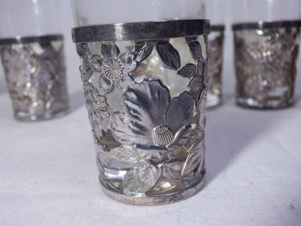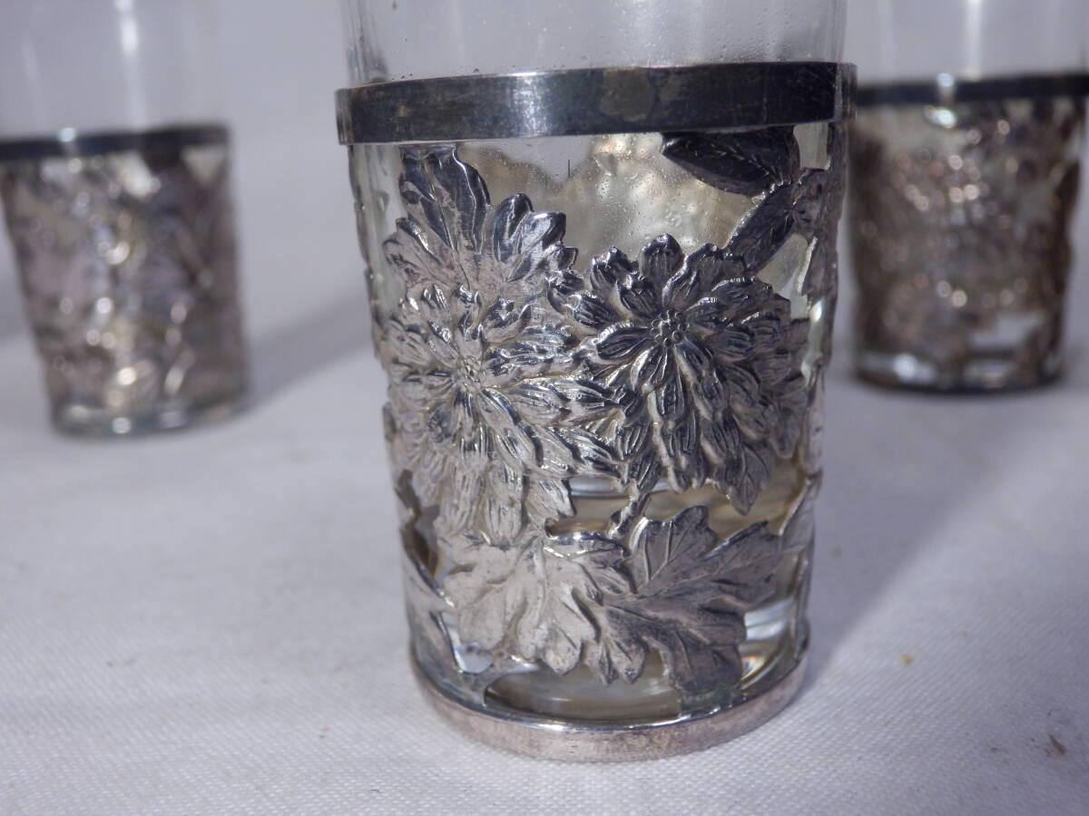 レトロ ビンテージ (シルバー 銀) 袴 13g ウイスキーグラス 6個 (約6.2x3.3cm) 刻印:SILⅤER