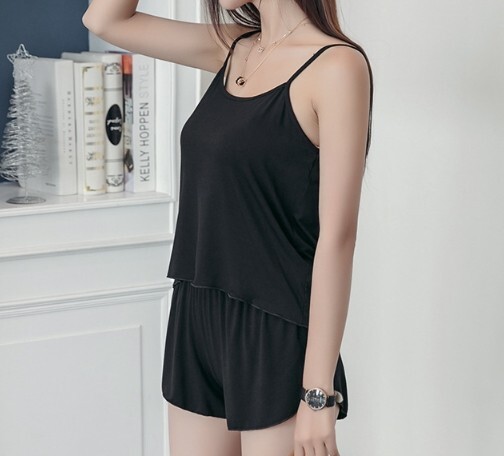 ナイトウェア・キャミ・ルームウェア・パジャマ 黒 L 送料無料 |
