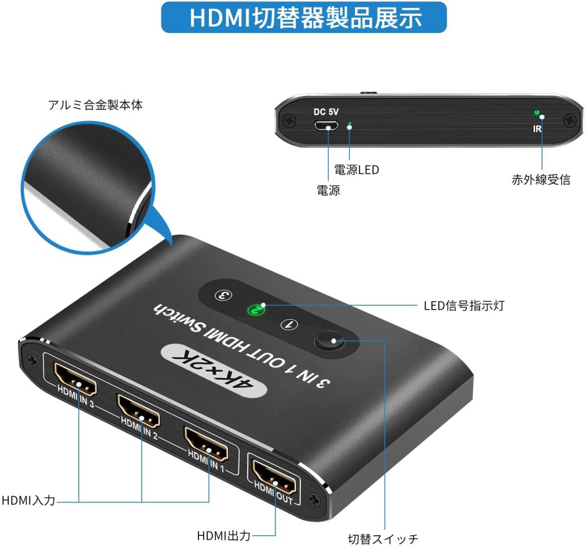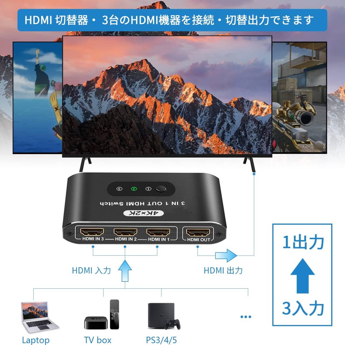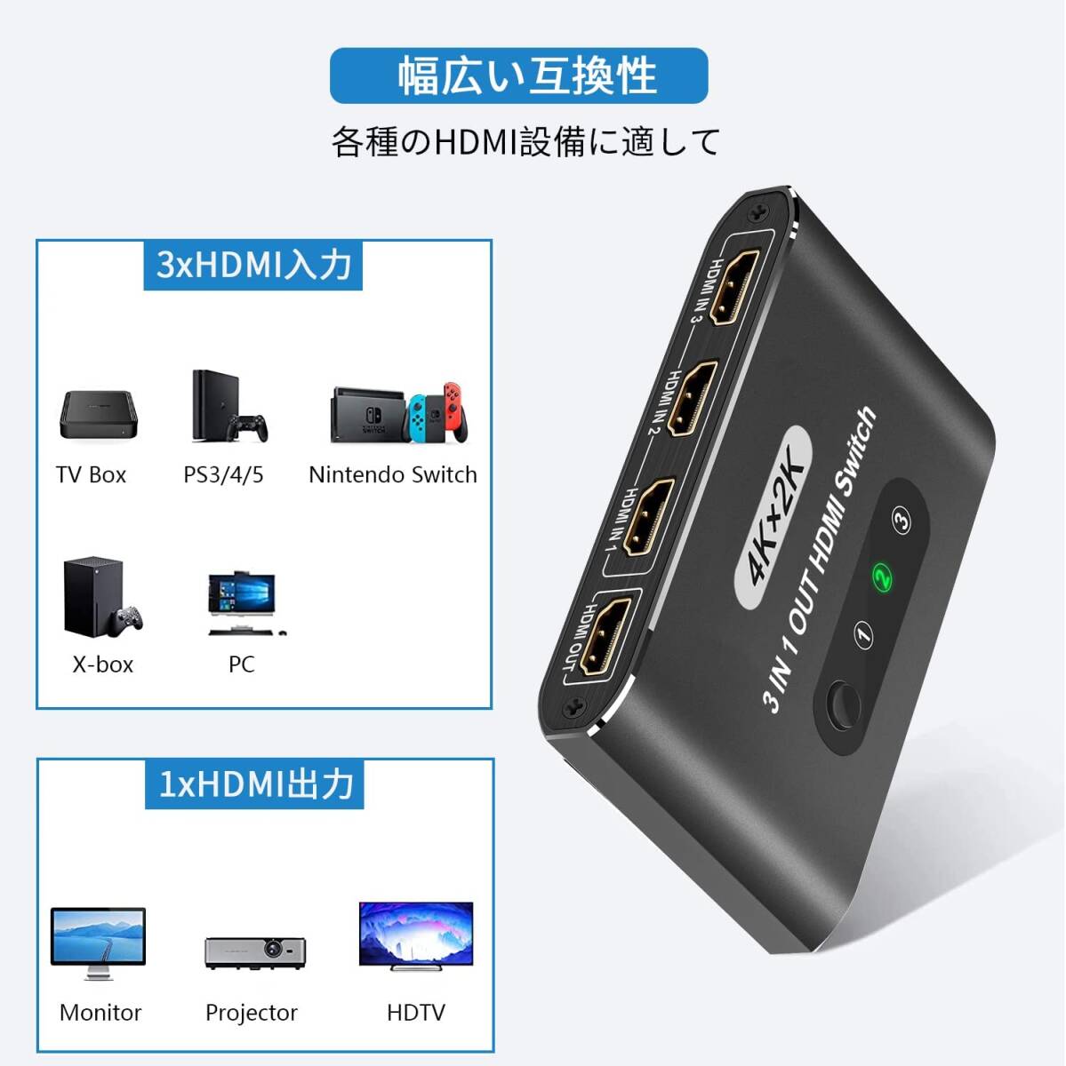 | コネクタタイプ | HDMI 切替器 3入力1出力 |