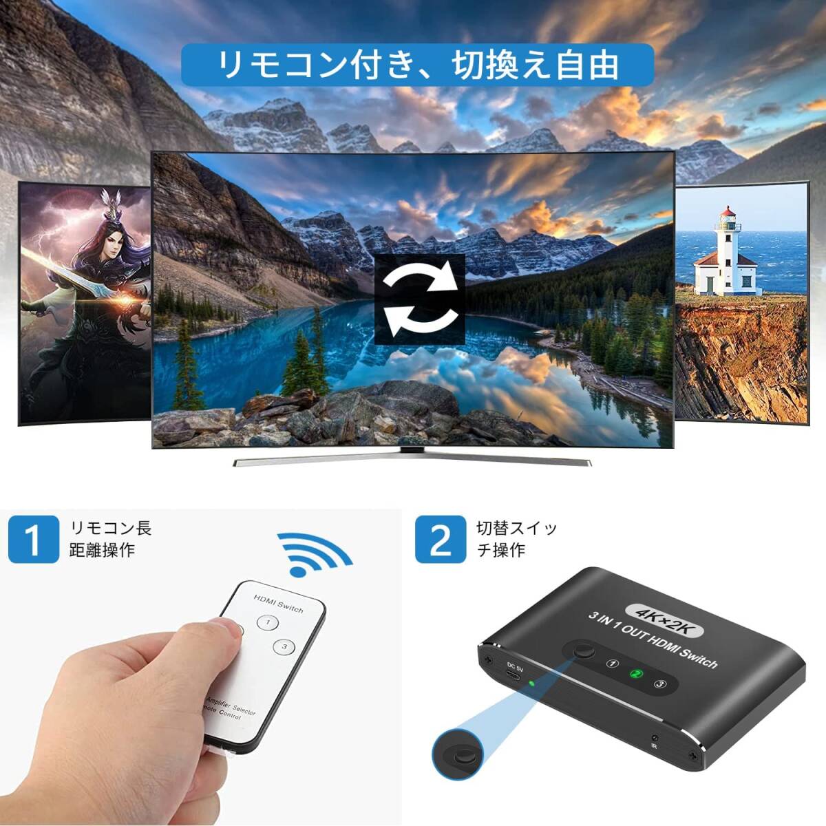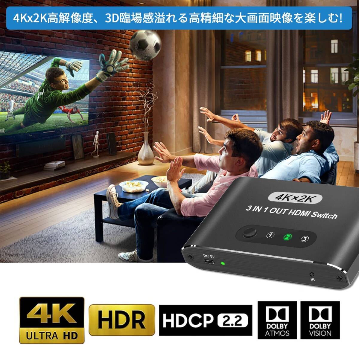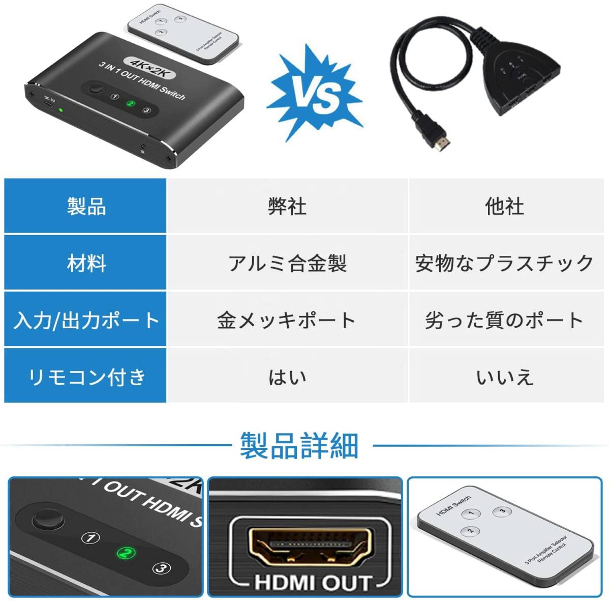 | コネクタタイプ | HDMI 切替器 3入力1出力 |