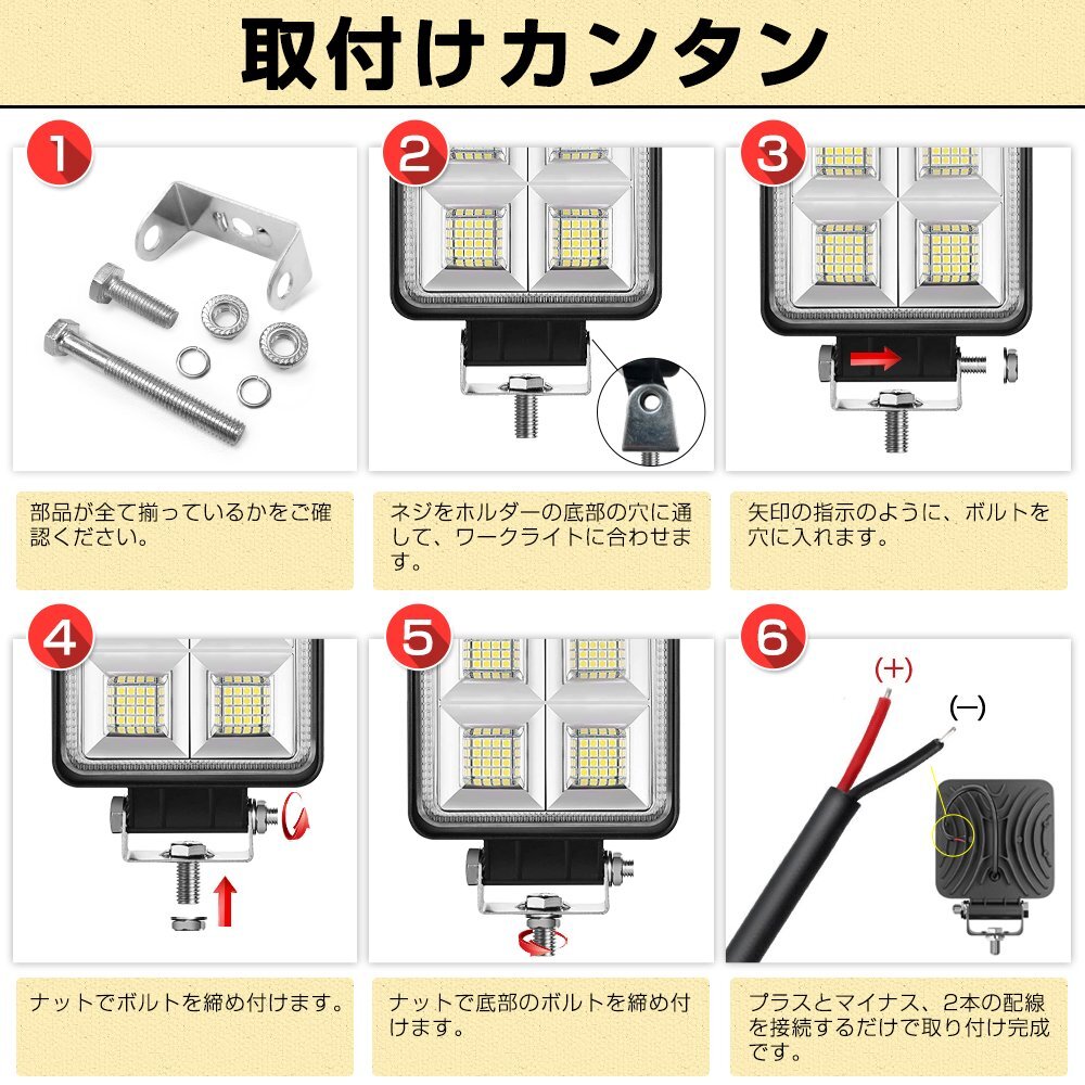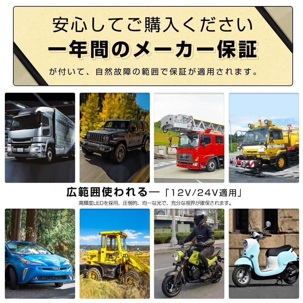 超高効率LEDで眩しいほどの明るさを実現しました! 「高輝度」、「全方面拡散」、「低電力」、「長寿命」などの特性を持ちながら、値段もそんなに高くありません! ◆高品質LED採用: 高品質LEDチップが採用されており、均一な発光、バラツキを抑えて、より幅広い範囲を照明できます。太陽光線と同じ色温度の6000Kのライトなので、夜の作業も快適に行えます。 ◆優れた放熱性: アルミ基板なので、高温にも耐えられる非常に優れた耐熱性・放熱性を実現!! さらに強い耐食性と一定の絶縁性を持って、とっても便利です。 ◆取り付け簡単: 取付用金具が付いていて、2本配線するだけの簡単接続仕様。また、LEDワークライトの上下角度は180度調整出来るようになっており、適度な角度で明るく照らし、快適に作業していただけます。 ◆角度調整可能: 便利に調整可能なブラケットを添付しますので、作業灯を45°程調整できます。 ◆広い使用範囲: トラックの荷台用の照明、フォークリフトのライト、除雪車のライト、海苔漁の常夜灯、シラス漁の常夜灯、漁船の作業用ライト、トラクターのライト、夜釣りの照明・集魚ライト、漁業用、農業機械用、建設機械等作業用としてご使用いただけます。また、災害時の備えとしても、交通整理や工事現場など様々な場面でも活躍できます。 【保証】 ◆当商品は12っヶ月保証となります。 ◆お届けから1週間以内にご連絡のあった不良品の保証対応の送料は当方が負担いたします。 ◆保証期間内の不良品ですが、交換のみ対応しております。往復送料はお客様負担となります。在庫がない時だけ返金しますので、ご了承ください。 |