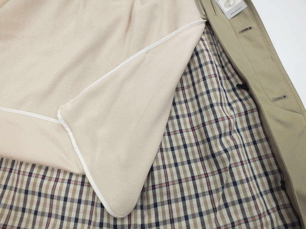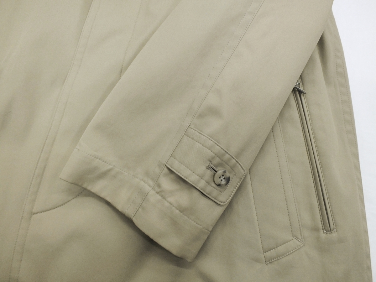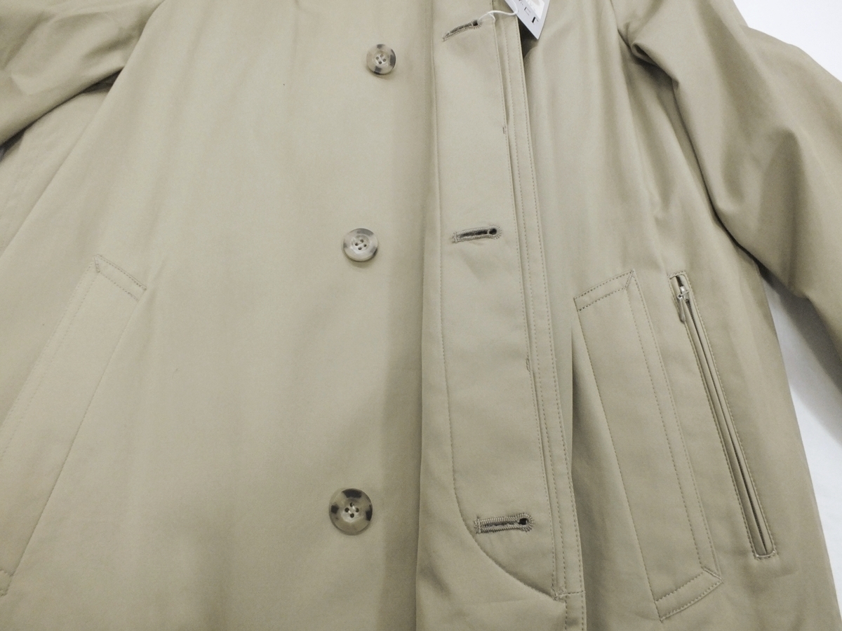 表素材:綿100% 裏素材:ポリエステル65/綿35 ライナー地:ポリエステル100%(起毛したネル地) カラー:ベージュ系 デザイン 襟:ステンカラー、ラグランスリーブ、ポケット:内1か所、外3か所/センターベンツ/総裏仕様 サイズ:M(適用胸囲:バスト88~98) 普段のスーツサイズY5・A5・AB5前後の方 縫製:中国 実寸 コート丈88cm・裄丈84cm・身幅58cm・ウエスト120cm(脇の下ボタンを掛けて計れば) | ||||