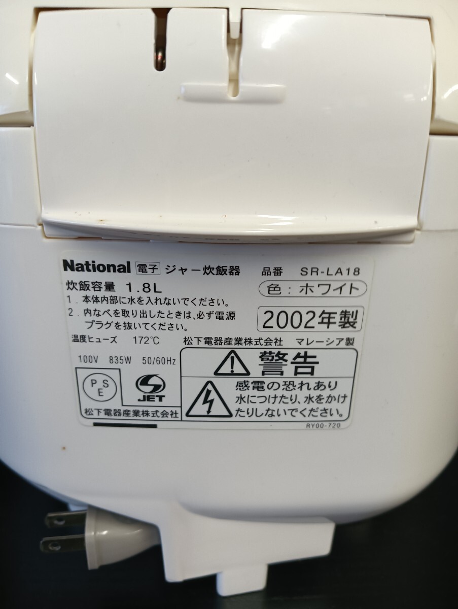 【25*11010】◆Nationalナショナル◆電子ジャー炊飯器SR-LA18-W◆1.8L炊き◆遠赤黒釜◆通電・動作確認済み◆中古品 | |||