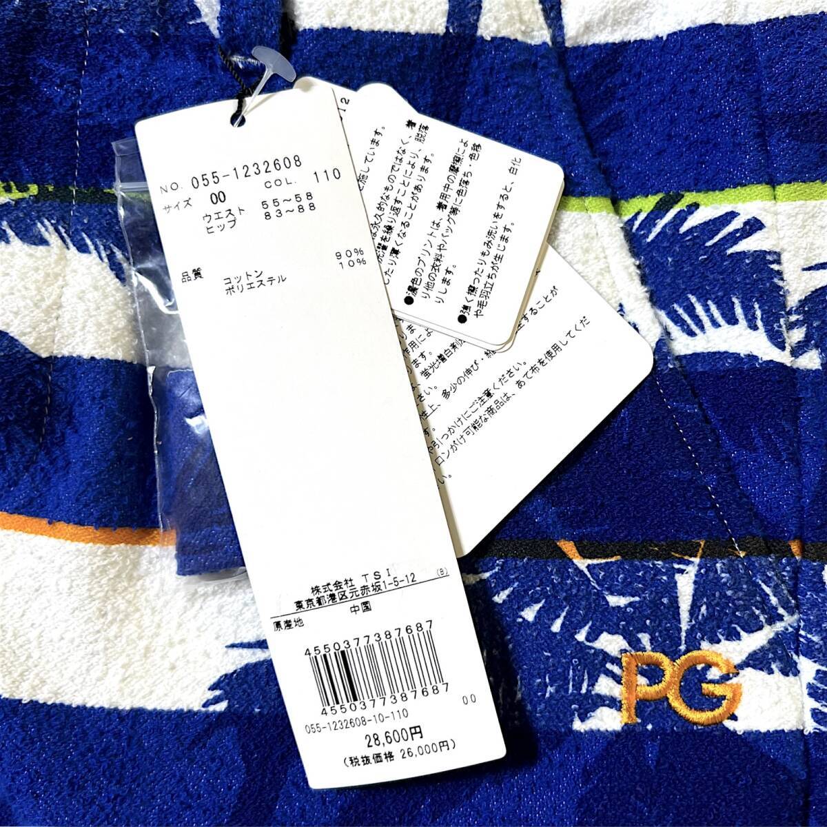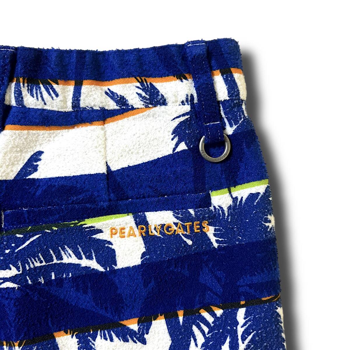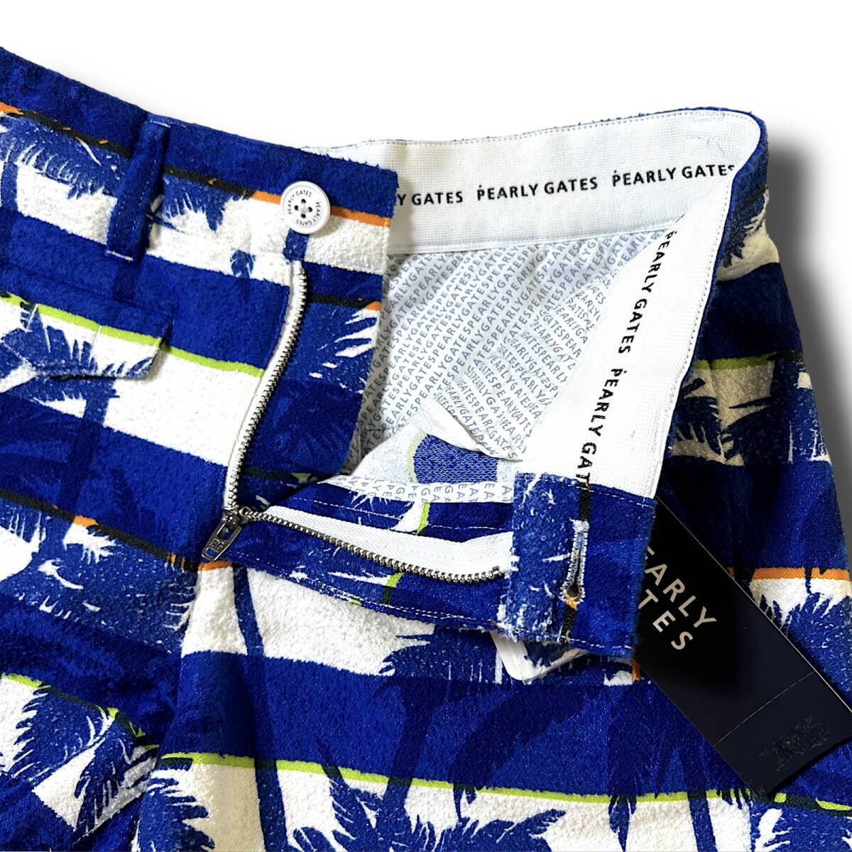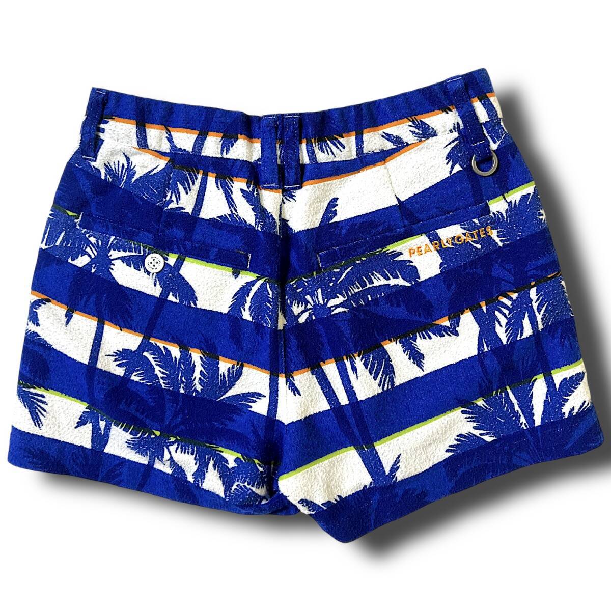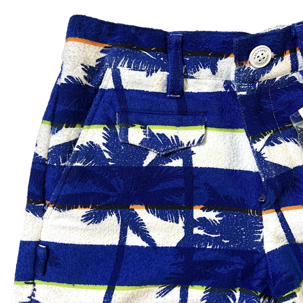 タイトル 新品 PEARLY GATES パーリーゲイツ 速乾通気性 コットンパイル ボーダー マリンコース ヤシの木 ミニ ショートパンツ ショーツ キュロット 00 XS SS 相当 ゴルフウェア レディース GOLF スポーツ レジャー 普段使い タウンユース カジュアル 春夏秋 ブルー系