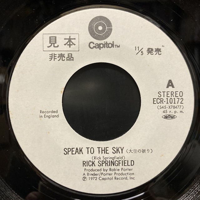 | 【アーティスト】 リック・スプリングフィールド 【タイトル】 大空の祈り 【規格番号】 ECR10172 【商品説明】 7インチシングル/見本白ラベル 東芝稀少シングル 【状態】 EX-/EX |