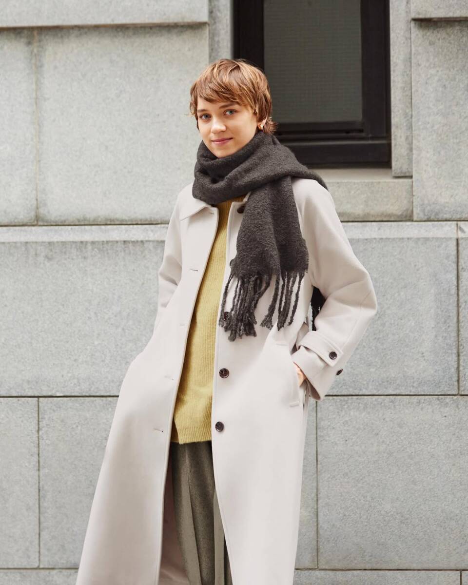 GU コージーメルトンバルマカーンコート NATURAL 【仕様】 膨らみのあるニードルパンチ素材で軽くてやわらかい着心地に仕上げたコート。襟を立て、チンベルトを留めることで首元の防寒になります。スタイルの変更も可能なので、その日の気分に合わせて楽しむのがおすすめ。スリムパンツにロングブーツのような合わせや、ミニ丈ボトムスとスタイリングするとおしゃれにキマります。 襟元:タブあり(取り外し可),前中央ボタン留め・ボタン×5,ウエスト:ベルトループあり・ベルト付き,ポケット:前×2(左右),裏地あり サイズL:着丈109.5 身幅56.5 | |