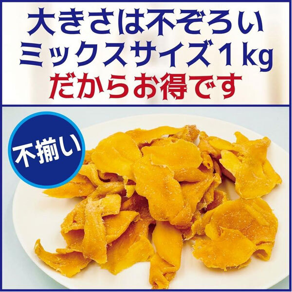 | 内 容 | ■チブギス ドライマンゴー 不揃いミックス ■内容量:1kg ※賞味期限:2027.3.31 |