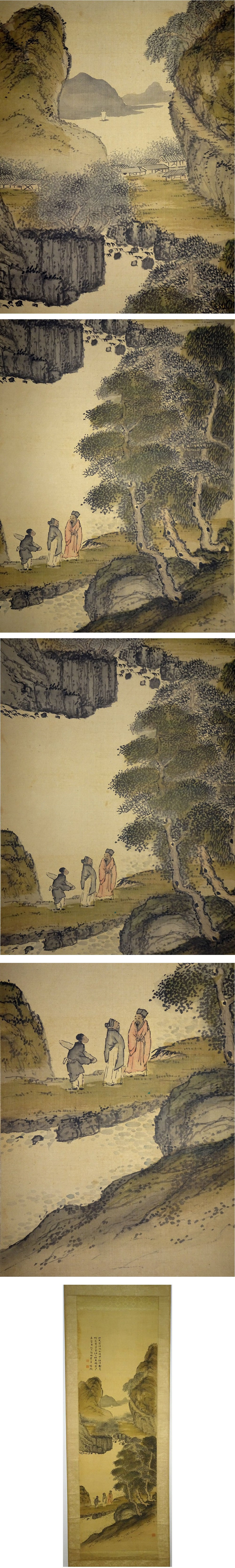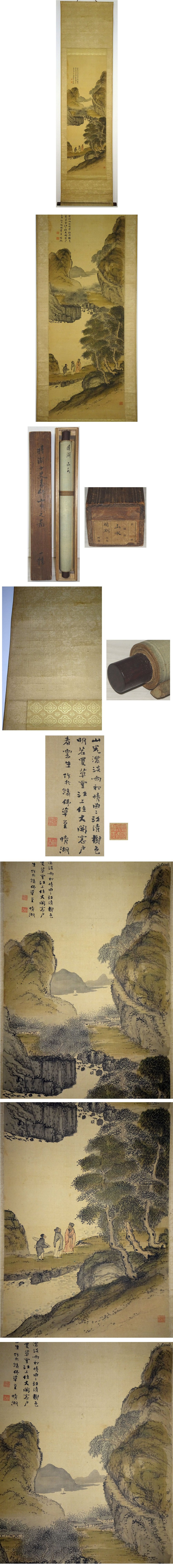 絹本 紫檀軸 真筆保証(真作) 裂表装 ウブ幅 桐箱入 中身寸法108×35.5 少しヤケ等あり 幅自体しっかりしています よろしくお願い致します