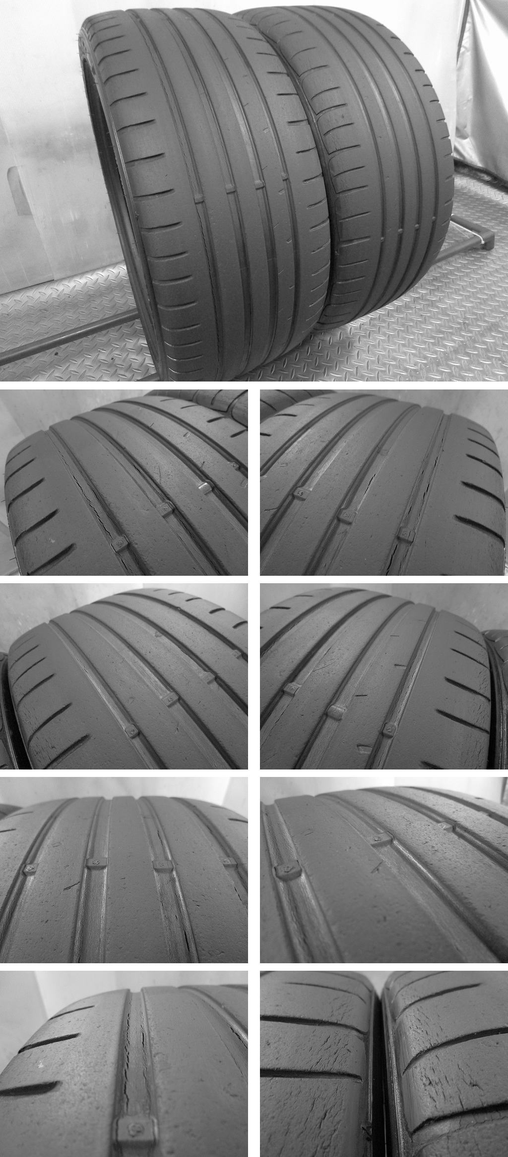 | ■状態: | 2本ともに、中古タイヤ特有のヒビが出てきています。 |