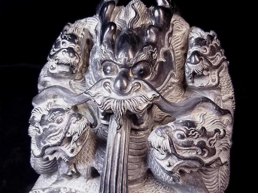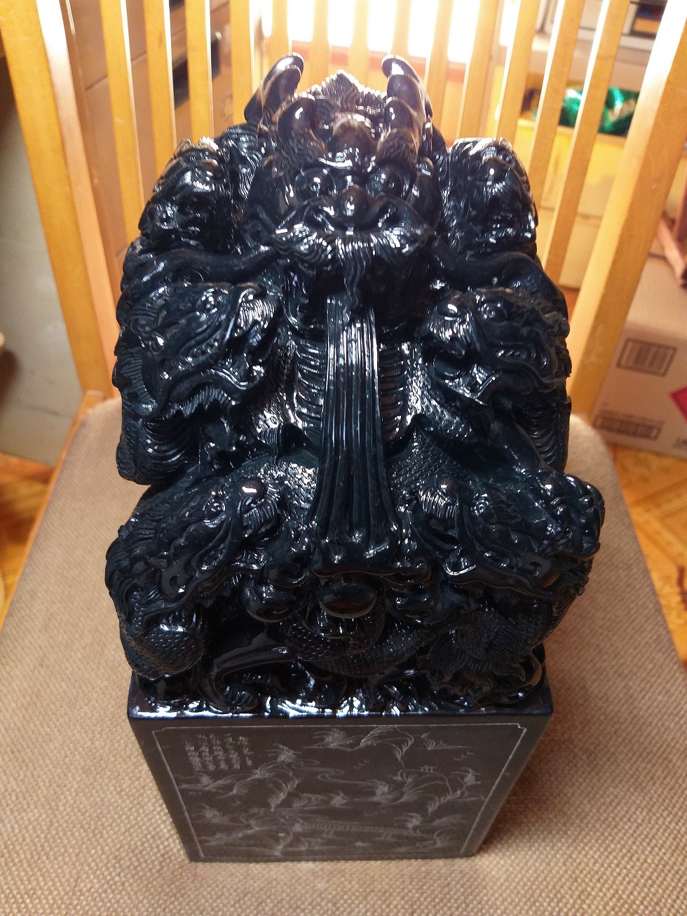 ●簡要説明:この出品は、重さ15.485KG天然最高級極珍品超巨大壽山高山黒碧凍石高彫印材置物『九龍在天』 中国工芸美術大師作品です!収蔵未使用品です。