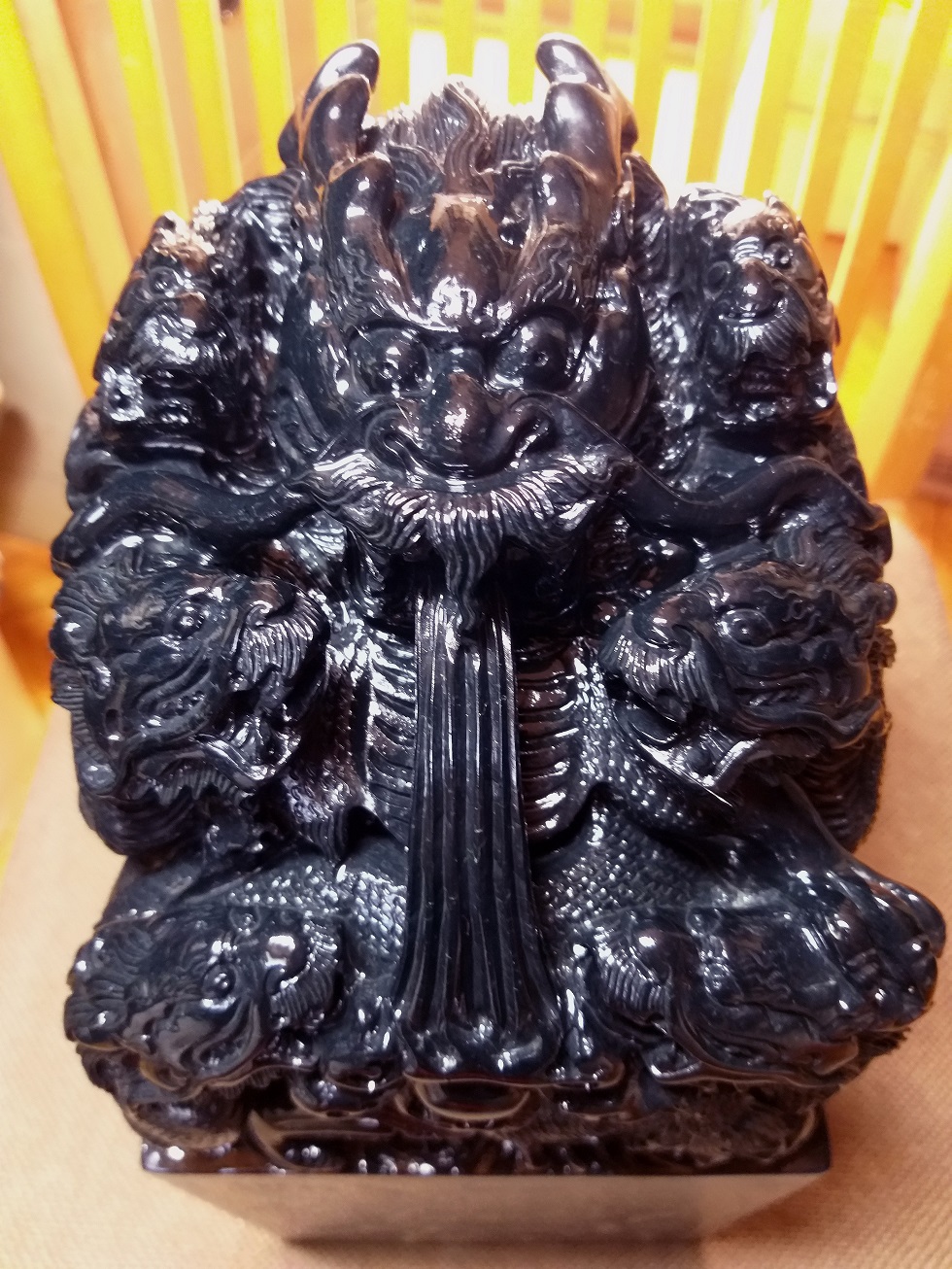 この一品は、最高級超大専用手工芸絹麻張り木製収蔵ケース(箱)付きます。このケースは、この高彫印材置物専用に注文オーダーした品です。