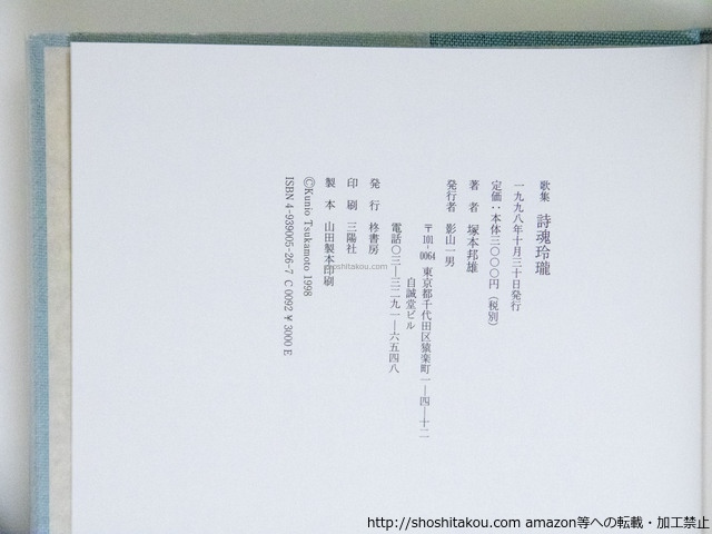 歌集 詩魂玲瓏 初函 毛筆歌署名入 / 塚本邦雄 ◯当店在庫から「塚本邦雄」の本を探す| ★ 発送方法 (送料無料) ・日本郵便のゆうパケット・レターパックライト・レターパックプラス・ゆうパックの中から荷姿の大きさに適した方法で発送します。(発送方法や到着日時はご指定いただけません。) ・上記発送方法はすべて追跡番号付き・土日配送有・速達扱いです。ゆうメールや定形外は発送に使用いたしません。 ・ゆうパケット・レターパックライトは郵便受けにお届け、レターパックプラス・ゆうパックは配達員対面受取です。防水梱包します。 ★ 必ずお読みください ・代金決済後の次の火木土に発送します。 ・ストア出品です。ご注文時に必要事項のご記入・決済いただいた後は、やり取り不要です。商品の到着をお待ち下さい。 ・肉筆物・美術作品は真作保証いたします。 ・商品のレファレンス(調べ物)サービスは行っておりません。また当店商品以外の無料鑑定は行っておりません。 |