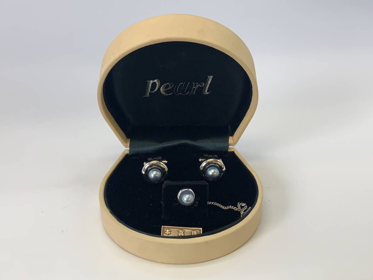 ★Lion star ライオンスター タイタック カフス パール 本真珠 黒蝶 SILVER 800 | |||