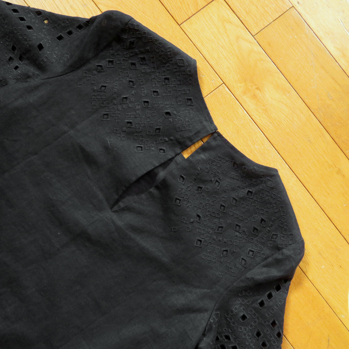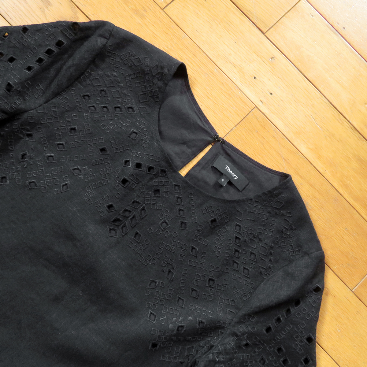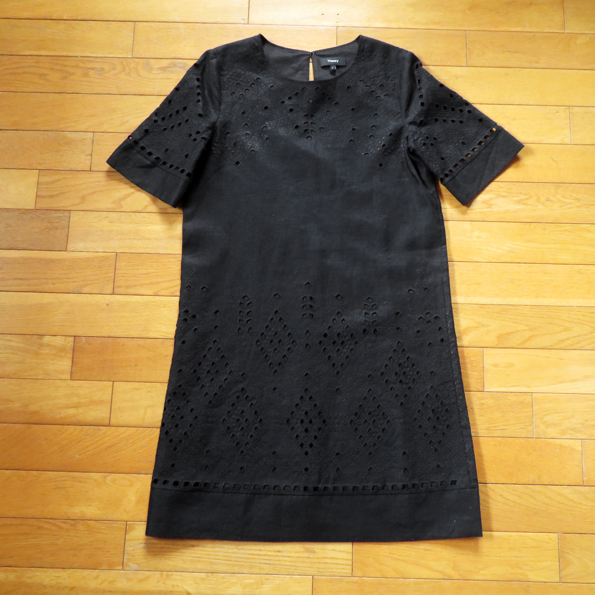 セオリーの麻を使用した、夏はもちろんジメジメした季節にもサラッと快適に着用できる ワンピースで、少しパリッとした清涼感ある肌触りで、とっても着心地抜群になっています(*^ ^*) 細かく柄に刺繍とパンチングされていて、少しクラッシック調なイメージというのでしょうか。 とっても凝ったワンピースになっています。 コットンの薄い裏地もついていて、肌触りもとっても良くなっています。 シルエットは、シンプルなストレート系、お色はブラック(かなり濃い目)、とっても合わせやすく、 もちろん一枚でも羽織れて、インナーにも着用できて、使いやすい便利アイテムです。 お値段も4万2千円ほどでした。 右側写真は同じモデルです。モデルさんも着用していて、とっても可愛いですね。 シルエット、イメージ、着こなしなど参考にしてみてください。 おすすめです!いかがでしょうか^^ 【コンディション】 多少の使用感はありますが、試着程度でしまっていましたので、大きなダメージ、目立つ汚れ等はありません。 まぁまぁきれいかと思います。十分着用していただけます。 ★麻を使用したワンピースで、麻独特の生地のむらっぽいところは、最初からの仕様です。 ----------------------------------------------- 【表記】サイズ 0 (S~Mくらい) 【実寸】 平置き 肩幅 37cm (水平計測) 身幅 46.5cm (身幅は脇の下あたりで計測) 袖丈 30cm (上側計測) 着丈 87cm (後ろ側中央 上から下まで) 前後程度になります。※平置き、素人採寸になりますので、多少の誤差はお許し下さい。 ----------------------------------------------- 【色】 ブラック 濃いめ 【素材】 麻(LINEN) 100% 刺繍部分 ポリエステル 裏地コットン 【USED品】 ----------------------------------------------- ◆ 他にもいろいろデニムなど出品していますので、よかったら見ていってください。 ◆ もちろん同梱もできますので、お気軽にご質問ください。 ◆ 気持ちの良いお取引を目指していますので、ご質問は事前にお気軽にどうぞ。 終了直前だとお答えできない場合があります。どうぞよろしくお願い致します。 | ||||