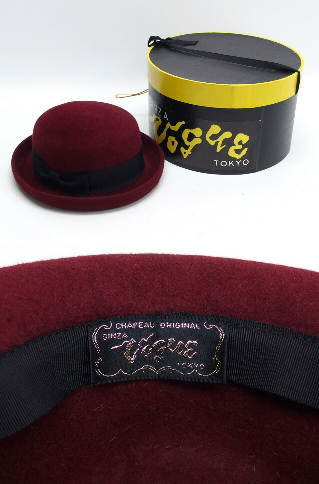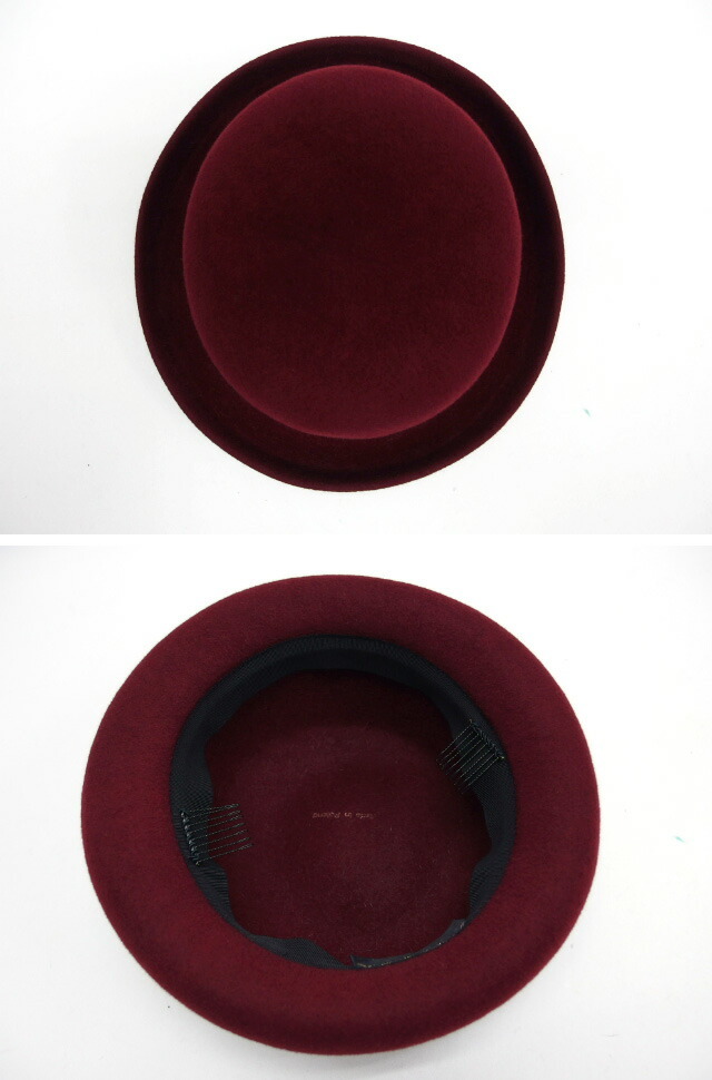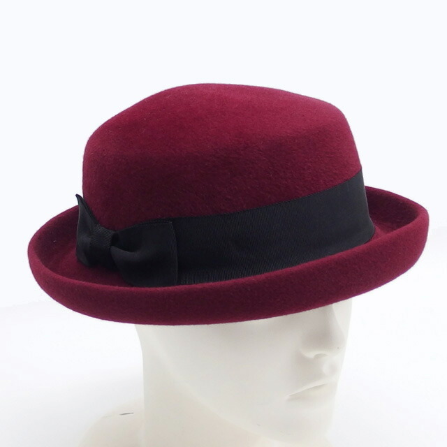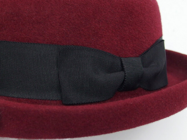 コメント | 深みのあるボルドー(深赤)がエレガントな、ボーラーハットをご紹介致します。巻きあがったツバとサイドリボンがお洒落な帽子ですので、どんなコーディーネートにも合わせやすい逸品!また、保温性も抜群です。 |