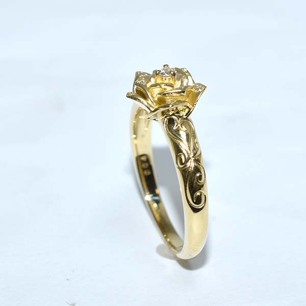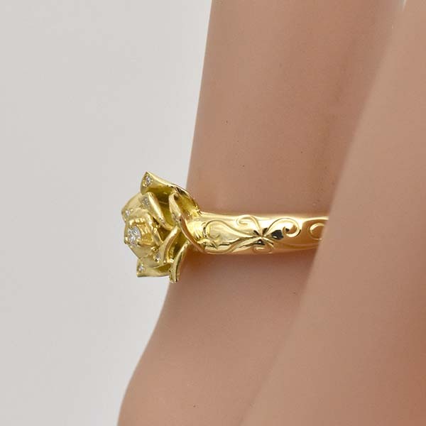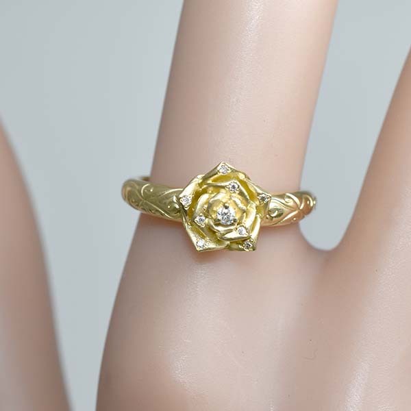 バラモチーフにダイヤを散りばめた18金製のファッションリング。| 商品詳細 | |||||||||||||||||||||||||||||||||||||