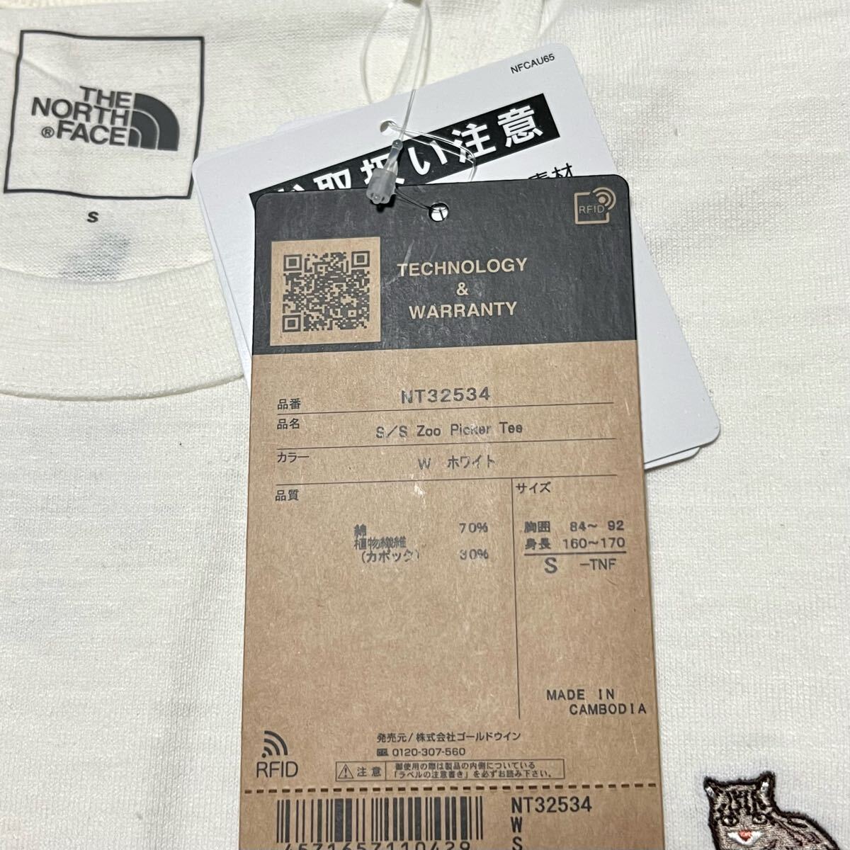 S 新品 ノースフェイス 刺繍 ネコ ロゴ Tシャツ 白 半袖 Zoo Picker Tee ズー ピッカー 猫 ヤマネコ キャット CAT 動物 アニマル カフェ