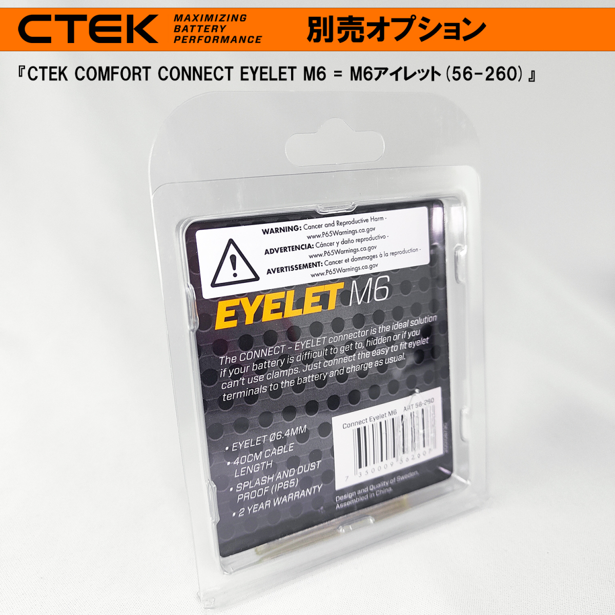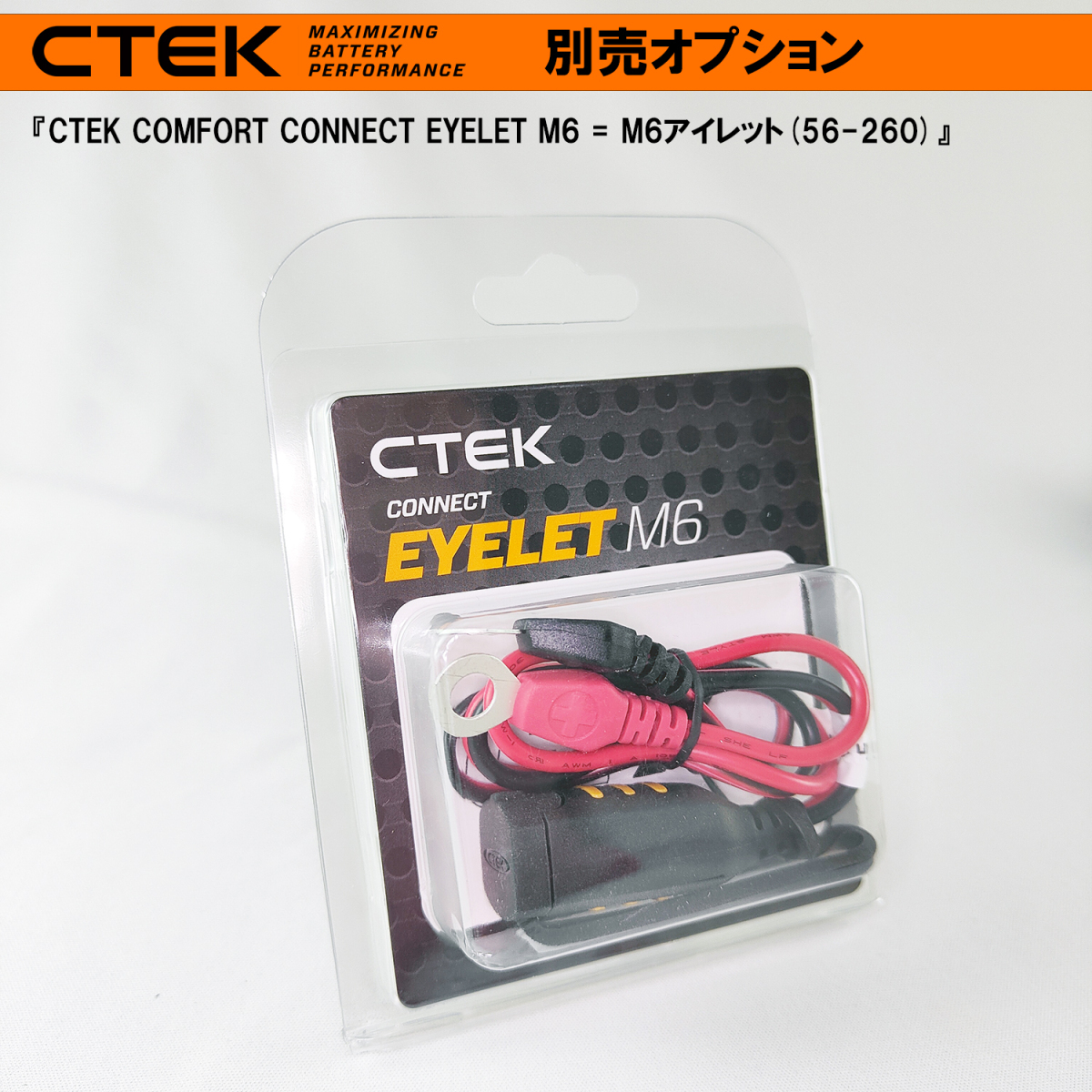新品・並行輸入品 コンフォート・コネクト・アイレット(6mm) コンフォート・コネクト対応のアイレット(6mm) 6.4mmアイレット 40cmケーブル 最大10A コンフォート・コネクトでCTEK充電器にすぐに接続充電可能に |