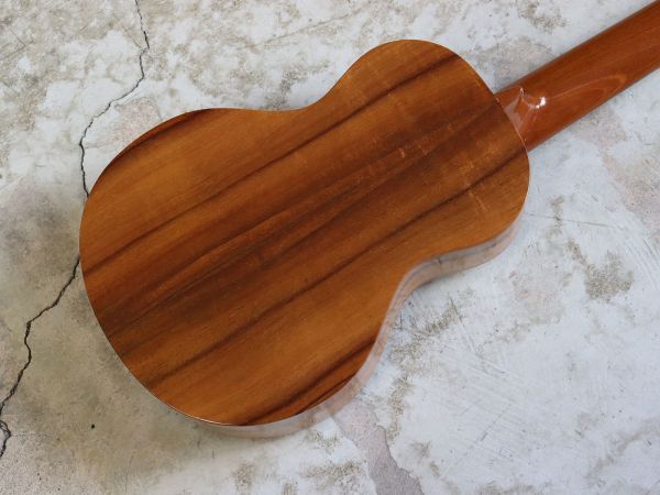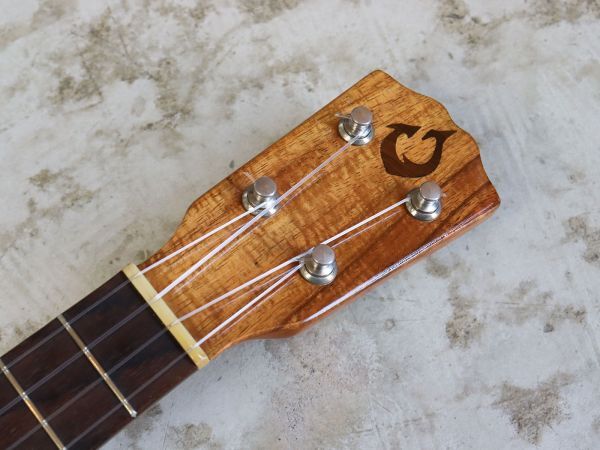 ハワイで制作されていた頃のG Stringのコンサートウクレレが入荷しました! 現在はラスベガスで制作されていますが、こちらはハワイ三大ウクレレと言われていた時代のものになります。 その呼び名にふさわしい、しっかりとした響きと、温かさと煌びやかさを兼ね備えた音色が魅力! 1音1音がはっきりと発音されるため、単音でもストロークでも音の輪郭がくっきりと感じられ音の広がりと芯のある響きをしっかりと感じられます。 モディエンドに写真のような傷がある他全体的に細かな傷がございますが、プレイコンディションは良好でまだまだ使っていただける一本! その他気になる点などございましたらお気軽にお問い合わせください。 [ 詳細情報 ] ネックコンディション ....良好 フレット残り ....ほぼ減り無し 付属品 ....セミハードケース |