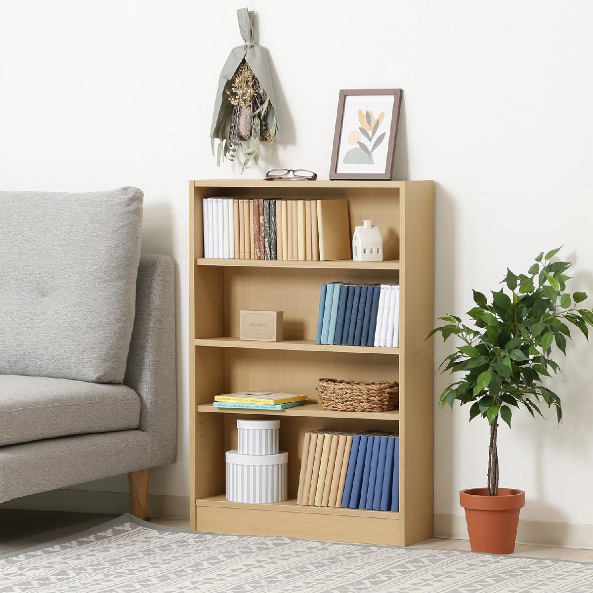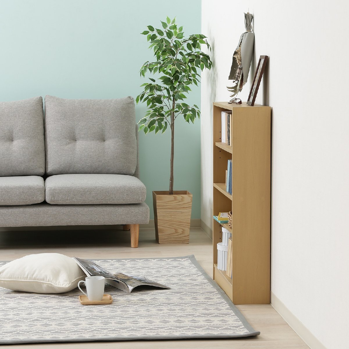| サイズ | 全体:幅600 × 奥行168 × 高さ890mm 耐荷重(全体):30kg 耐荷重(棚板):10kg 可動棚:2枚 板厚:15mm |