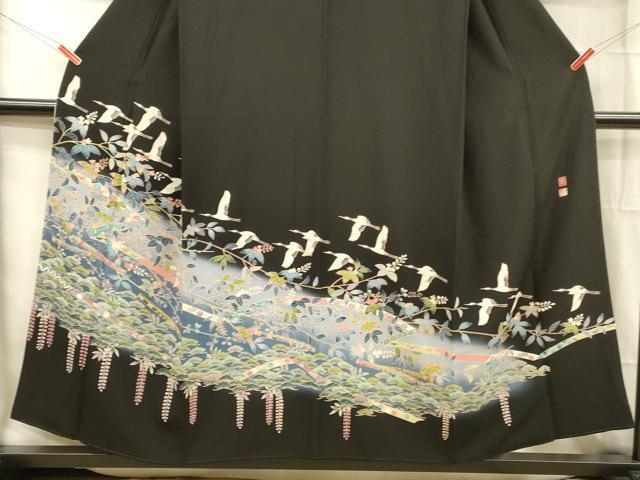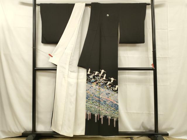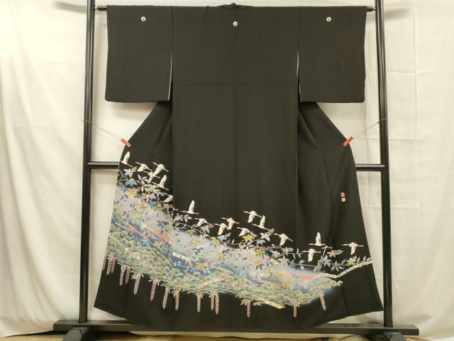 | 【正絹・五つ紋・比翼仕立て】 状態は画像を添付しておりますので、 そちらをご確認下さいますよう宜しくお願い致します。 着用時には見えない部分になるかと思いますのであまり気にならずお召になれるかと思います。 大変上質な逸品になります。 お安く出品致しますので、是非この機会にいかがでしょうか?