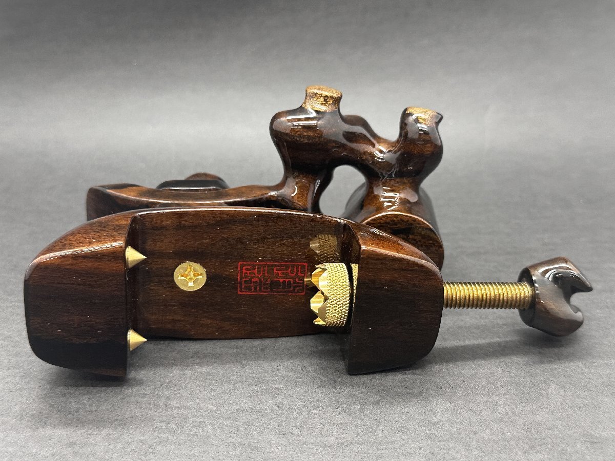商品情報 | ●素材:黒柿 ●土台約11.0cm ●内径約14.0mm ●あたり面約30.0mm ●万力有効幅4.5cm (素人採寸ですので多少の誤差はご了承下さい。 ) |