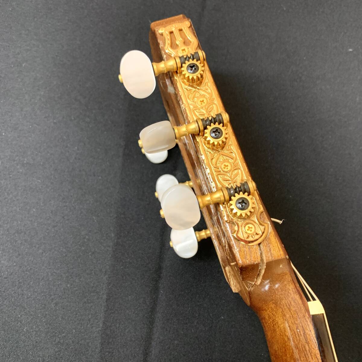 写真に載せきれない程に傷や打痕、錆等ダメージが多く、ネックはヘッド部分で折れており、順反りハイ起き状態です。