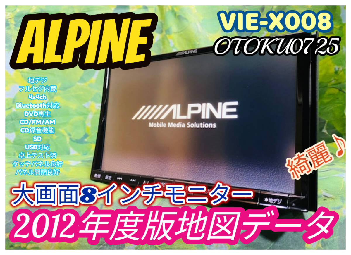 | 2012年版地図 ALPINE アルパイン ビッグX VIE-X008 8インチ フルセグ CD/DVD/Bluetooth/USB/SD/AM/FM 卓上テスト済 全国送料無料♪ | |