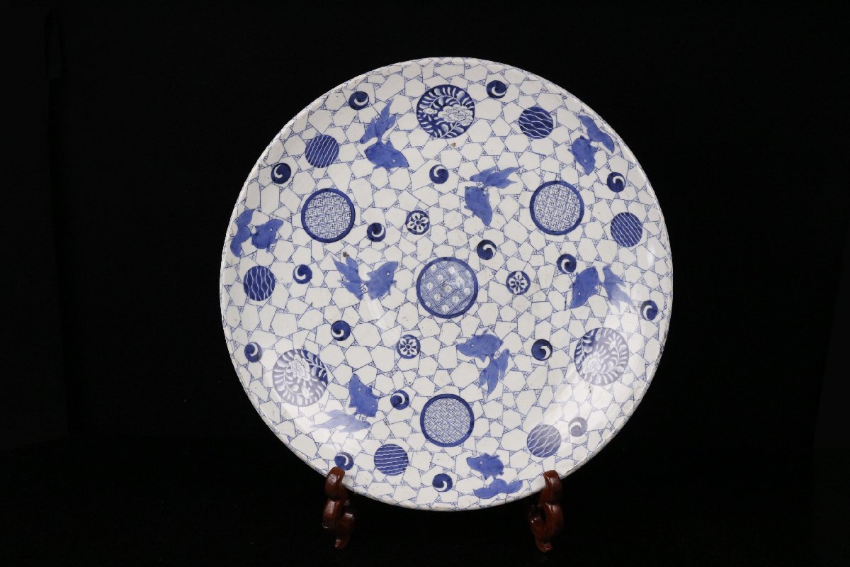 [.QU]25.10 25100420| * * * 商品詳細 * * * ここでしか出逢うことのできない唯一の美をご紹介させて頂きます。 白磁に青の濃淡が映える涼やかな大皿です。 リズミカルな文様が描かれた中を優雅に泳ぐ金魚の図案は 古風でありながらもモダンな雰囲気があります。 繊細な描き込みも素晴らしく、現代でも通ずる高いデザインセンスが伺える逸品です。 この機会に是非お手元にてご堪能下さい。 ■商品内容/大皿、箱 ※皿立は付属しません。 ■サイズ/横46cm×高7cm 箱:横49cm×高13cm ■状態/スレ、キズ、窯被、 箱にスレ、キズ、割れ、欠け、直し、経年による傷みがございます。 ※写真にてご確認、ご了承の上ご入札下さい。  !かんたん決済  * * * 発送詳細 * * *  入金確認後3営業日以内に発送致します。 ※直接引き取りも可能です。 60~160サイズにつきましては 佐川急便、ゆうパックのどちらかで発送いたします。 ゆうパック発送の場合、弊社の発送日から追跡サービスに問合せ番号が反映されるまで 約1日ほどお時間がかかりますのでご了承下さい。 * * * 注意事項 * * * 運送中の破損があった場合は速やかに当社までご連絡下さい。  保険を利用するのに受取連絡後に運送会社による現場での破損状況確認が必要となります。  勝手に返送されますと保険の適用外となりますのでご注意ください。  * * * * * * お問い合わせ:082-236-8669 |
