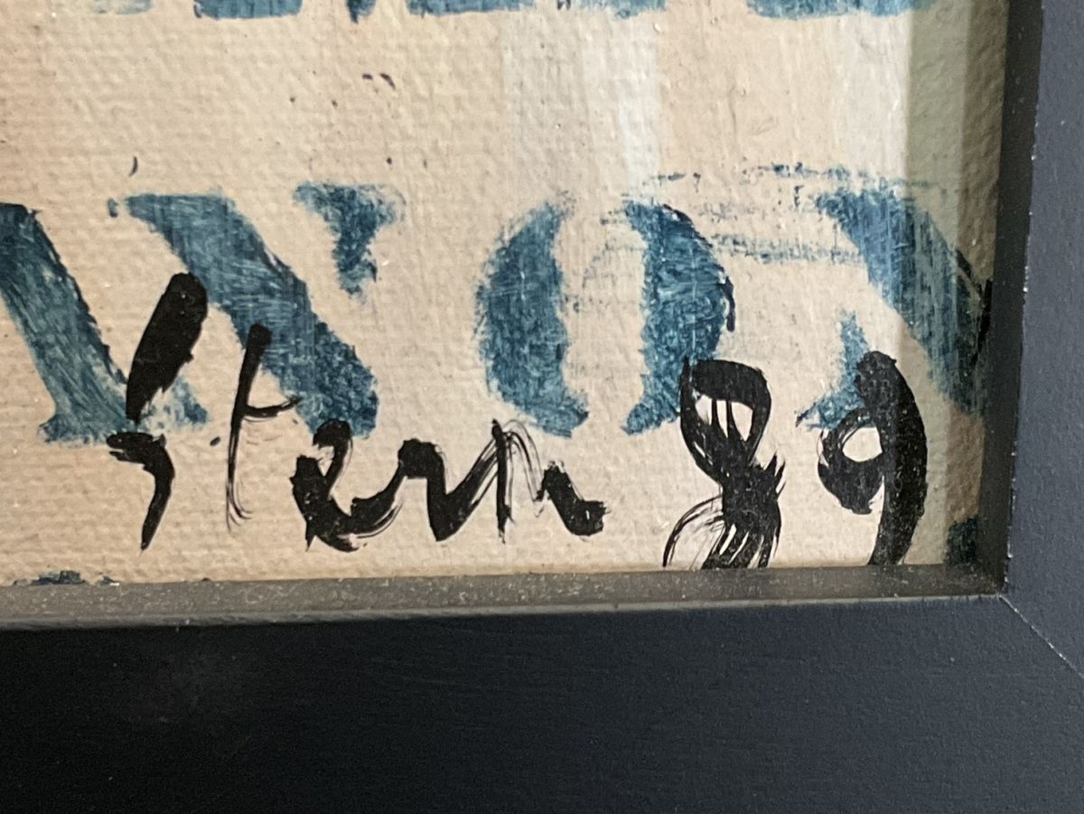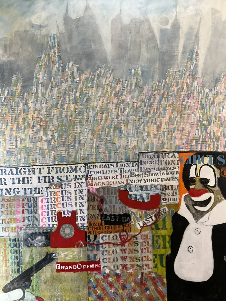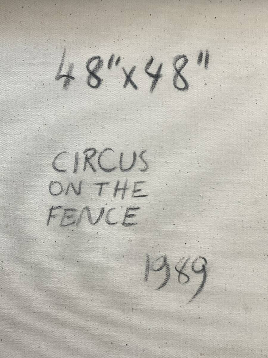 真作■アクリル・油彩■バーナード・スターン Bernard Stern■『Circus on the Fence』■古径額■50号大 大作 1989年