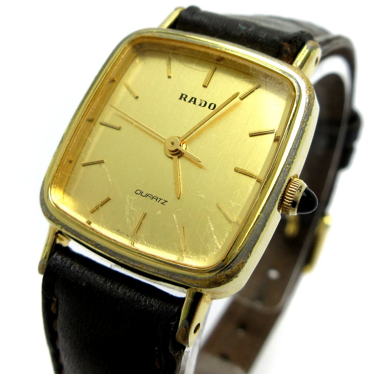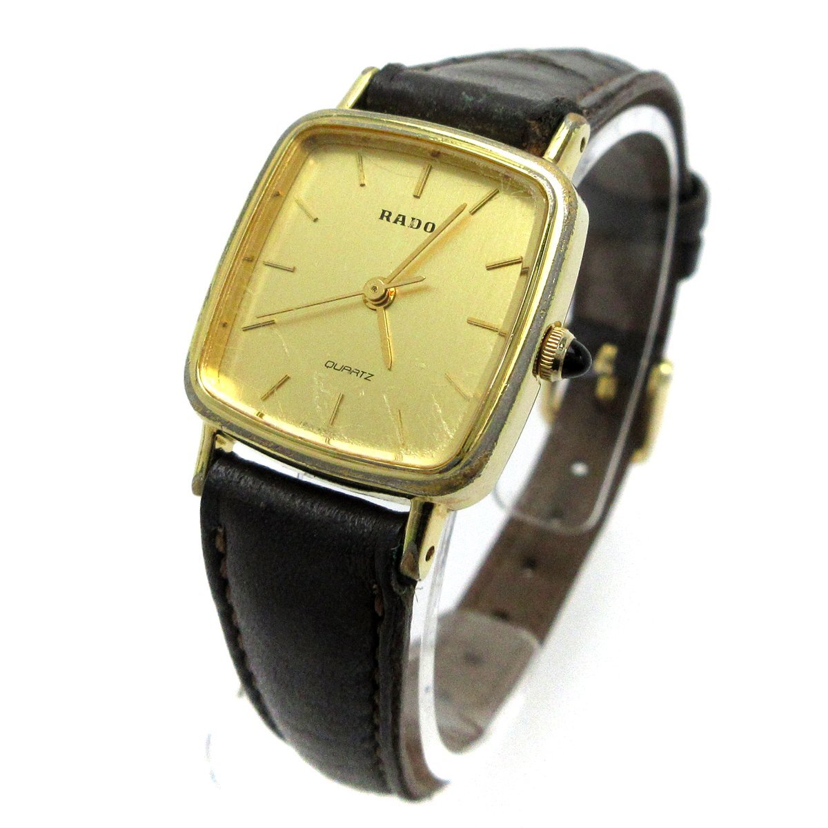 ■スイスウォッチ「ラドー」のレディースウォッチ。 ■小ぶりで品のあるゴールドスクエアのモデル。 ■3針、バーインデックスのオーソドックスなデザイン。 ■気軽に使える腕時計です。 ◎日常生活防水。 ---【商品状態】--- ☆外装、クリーニング済、小キズ、メッキ剥げの箇所があります。 ☆ガラスにキズがあります。 ☆バンド(社外品)、留めた際の跡、色ムラ、ヒビやシワなどの使用感があります。尾錠も社外品。 ☆ランクはケース【6】、ベルト【5】、ガラスにキズありのため総合【5】です。 ※商品画像はお客様のモニター環境によっては色調が異なって見える場合がございますのでご了承ください。 |
