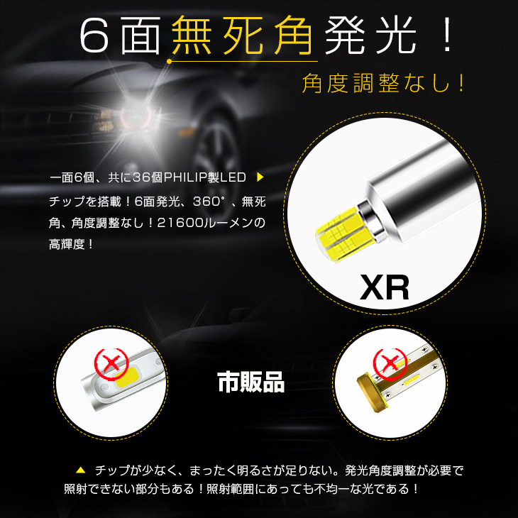 36個PHILIPS製LEDチップを搭載して、LEDバルブ最高クラスの明るさ!しかも、6面無死角発光!角度調整なし!純正球と同じサイズで、取り付け簡単! ◆PHILIPS製LEDチップを搭載: 一面6個チップ、共に36個PHILIPS製LEDチップを搭載して、バルブ1灯で10800ルーメンに達する!LEDバルブ最高クラスの明るさ! ◆6面360°無死角発光: 真の360度発光を実現するヘッドライト!角度調整なし!光がより均一で、より広く照射できます! ◆2重放熱: 高効率放熱システム、効果3倍以上アップ!1、市場で唯一銅を採用したヘッドライト、アルミニウムより2倍以上の冷却効果を誇ります!2、末端部に10,000RPMターボ冷却ファンを設計して、空気の流通はよくなって、熱を迅速的に発散できます! ◆一体型の設計: 一体型の設計で、オールインワンのコンパクトボディだから取り付け簡単!バルブの他に付属部品はありません!改装する必要が一切ありませんので、他の部品や電路を損なうことなく、簡単に純正バルブと交換することができます。 ◆純正球と同じサイズ: 純正球と同じサイズので、取り付け簡単!他一切の工事なし!入れ替えればいいので、リニューアルがよく知らないお客様も気楽に取り付けます 。 ◆驚きの長寿命: 50000時間以上の長寿命を持ち、メンテナンスの手間を軽減。 【保証】 ◆当商品は12っヶ月保証となります。 ◆お届けから1週間以内にご連絡のあった不良品の保証対応の送料は当方が負担いたします。 ◆保証期間内の不良品ですが、交換のみ対応しております。往復送料はお客様負担となります。在庫がない時だけ返金しますので、ご了承ください。 |