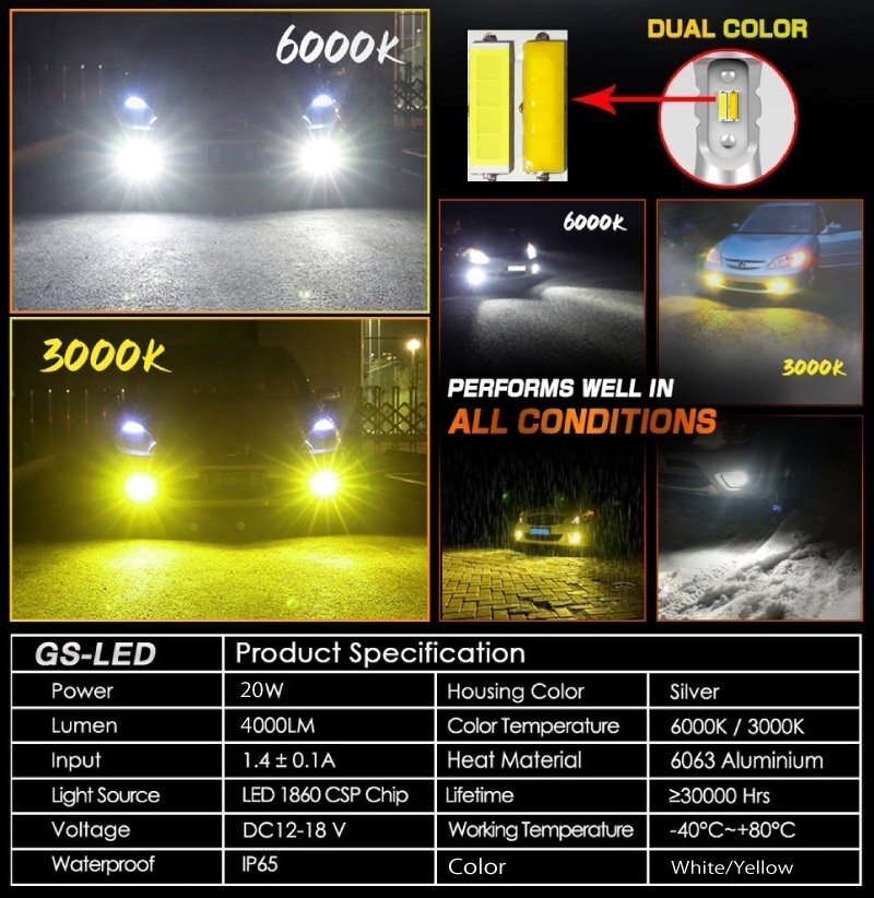 | 商品名 | CSP 1860 LEDオールインワンフォグランプキット 20w 4000ルーメン 3000kイエロー/6000kホワイト 1年保証 12v |