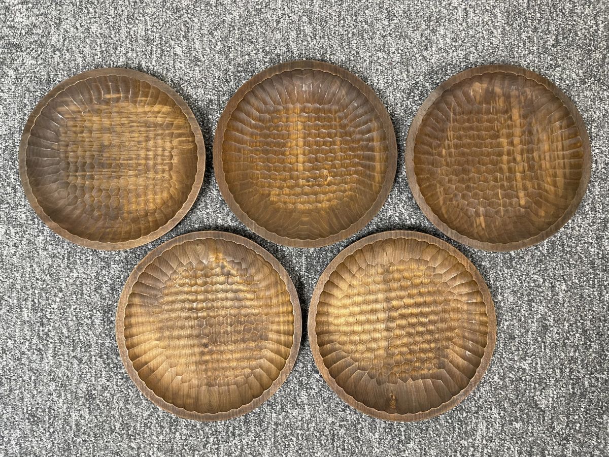 Cepelia亀甲彫りトレイ5枚:高さ約2.5cm 直径約19.5cm(ポーランド)
