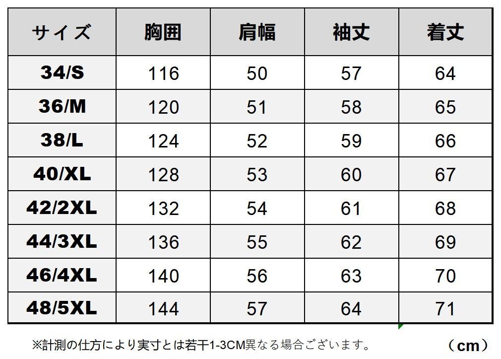 ★ご落札後お取引ナビでご希望サイズお知らせください★ 希少なレアカラーで仕立てた、襟付きのカウハイドスポーツジャケットです。 素材にはイタリアンレザー仕上げの上質な牛革を使用。 しっかりとした厚みとハリを持ちながら、柔軟でしなやかな着心地が魅力です。 ヴィンテージ加工により、革に深みのある色ムラや立体感を持たせ、 新品ながらも長年着込んだような味わいを演出。 経年変化とともにさらに風合いが増し、自分だけの一着に育てる楽しさがあります。 デザインはボマージャケットやライダースの要素を取り入れたクラシックなスタイル。 襟付きの仕様が男らしさと落ち着きを演出し、カジュアルにもキレイめにも対応します。 ジッパーやポケットなどの実用的なディテールも充実しています。 レアカラーの存在感に、ヴィンテージ加工の渋さが加わった本格派レザージャケット。 デザイン性・機能性・革の質感すべてにこだわった、大人のための一着です。 ■状 態 : 新品未使用 ■カラー :画像参考 ■実 寸 :背中側採寸 身幅/脇下すぐ ■SIZE: 画像参考 ■素材:カウハイド(牛革) ※サイズだけでは無く,必ず実寸をご確認下さい。 ※実寸は平置実寸。計測の仕方で若干の誤差がありますので参考程度。 |