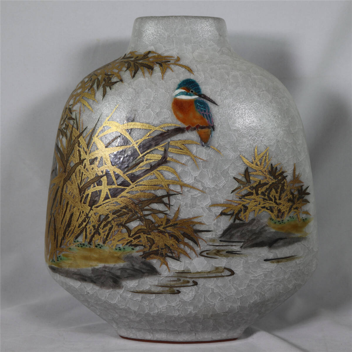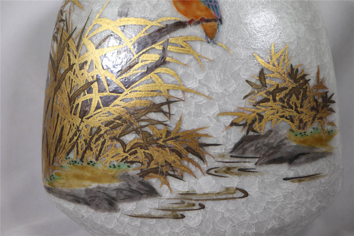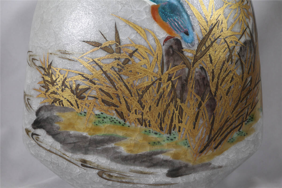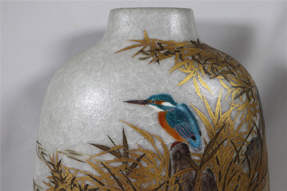 | 鈴木爽司 色絵金銀彩翡翠図扁壷 共箱 共袋 栞 師:富本憲吉 花瓶 花入 |