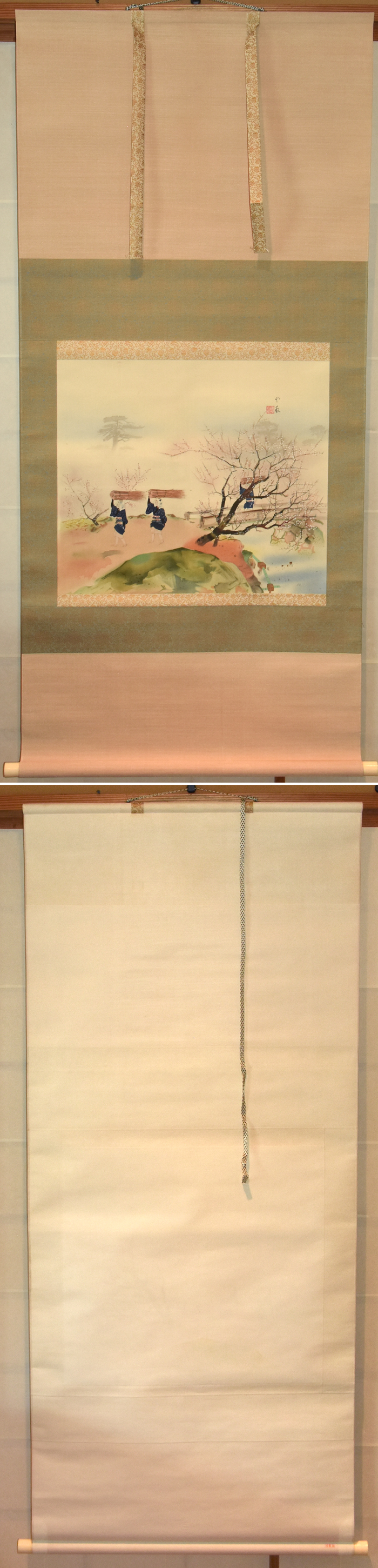 軸 横幅:69.5㎝ 長さ:140㎝ 本紙 横幅:50㎝ 長さ:44㎝ |